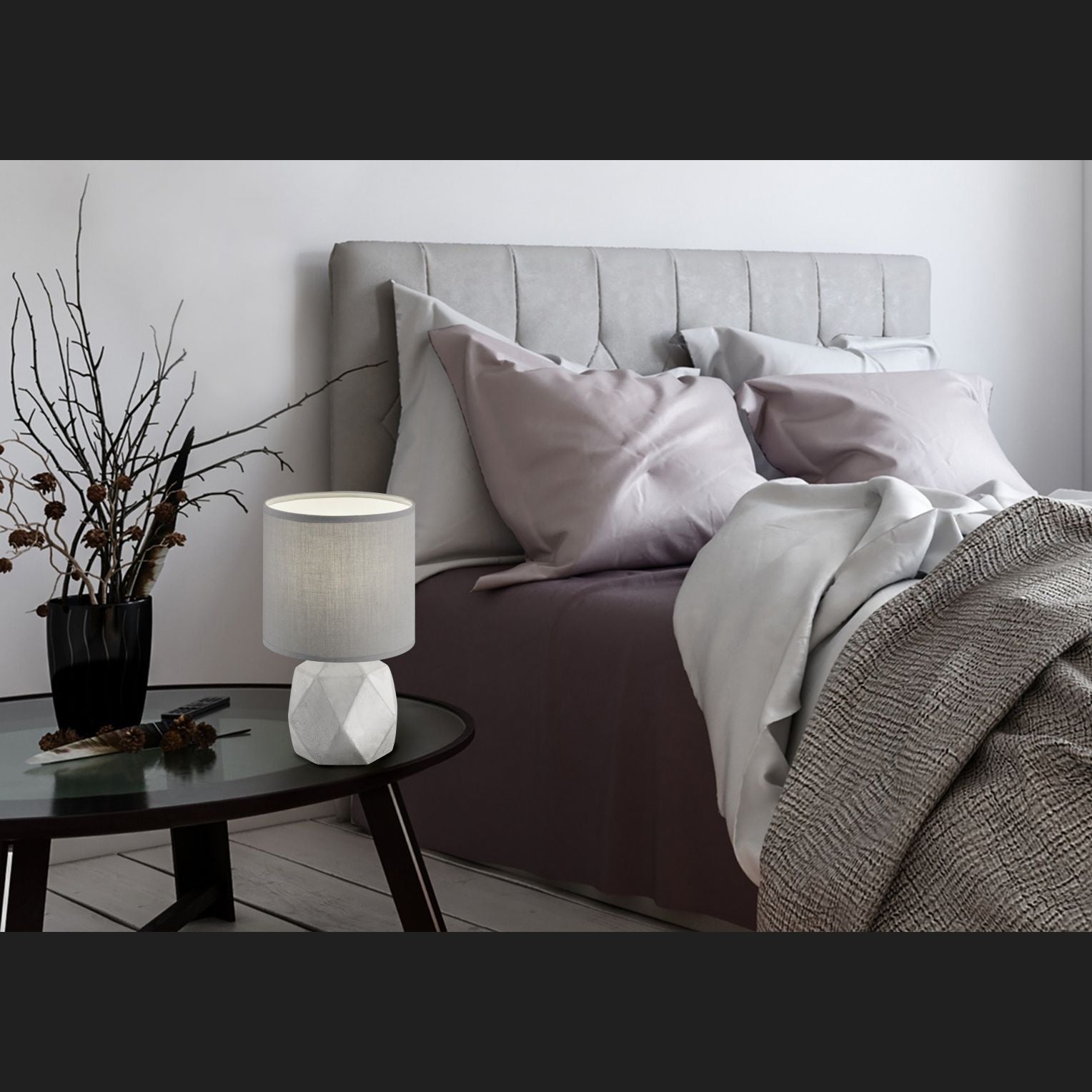 The PIKE table lamp is particularly characterised by its modern design. It serves as a beautiful accessory on shelves, chests of drawers and small tables, as well as a necessary light source in the workplace. The light also has a practical cord switch with which you can switch the light on and off. The grey fabric shade and concrete-coloured base make the PIKE particularly suitable for rooms with an industrial look. For energy-saving lighting, it is recommended to use an LED illuminant. These are an optimal alternative to conventional halogen lamps and stand for a high quality of light and energy savings of up to 80%. In addition, LED lamps help you benefit from a long service life, low heat generation and at the same time protect the environment.