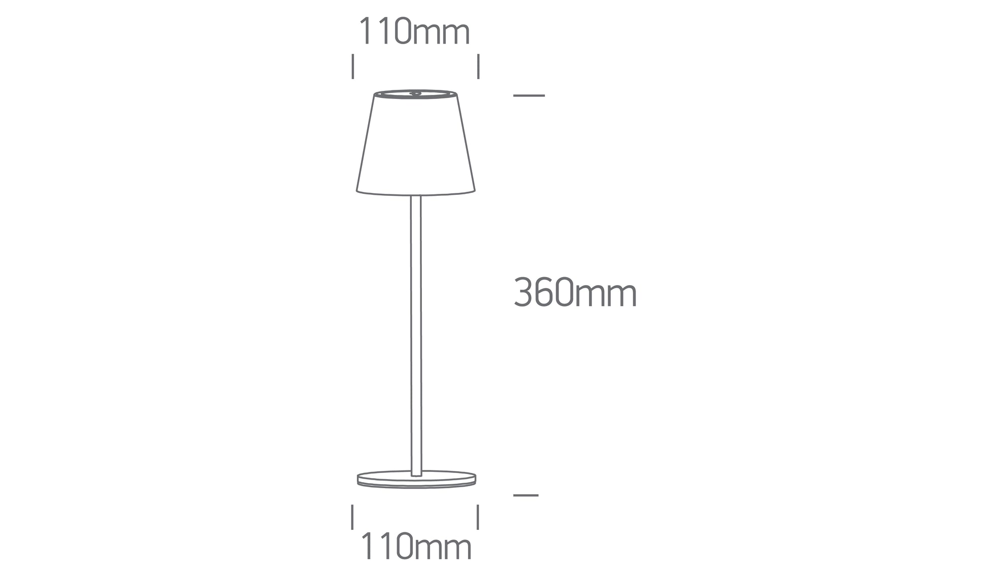 Rechargeable table lamp suitable for indoor or outdoor use, IP54.