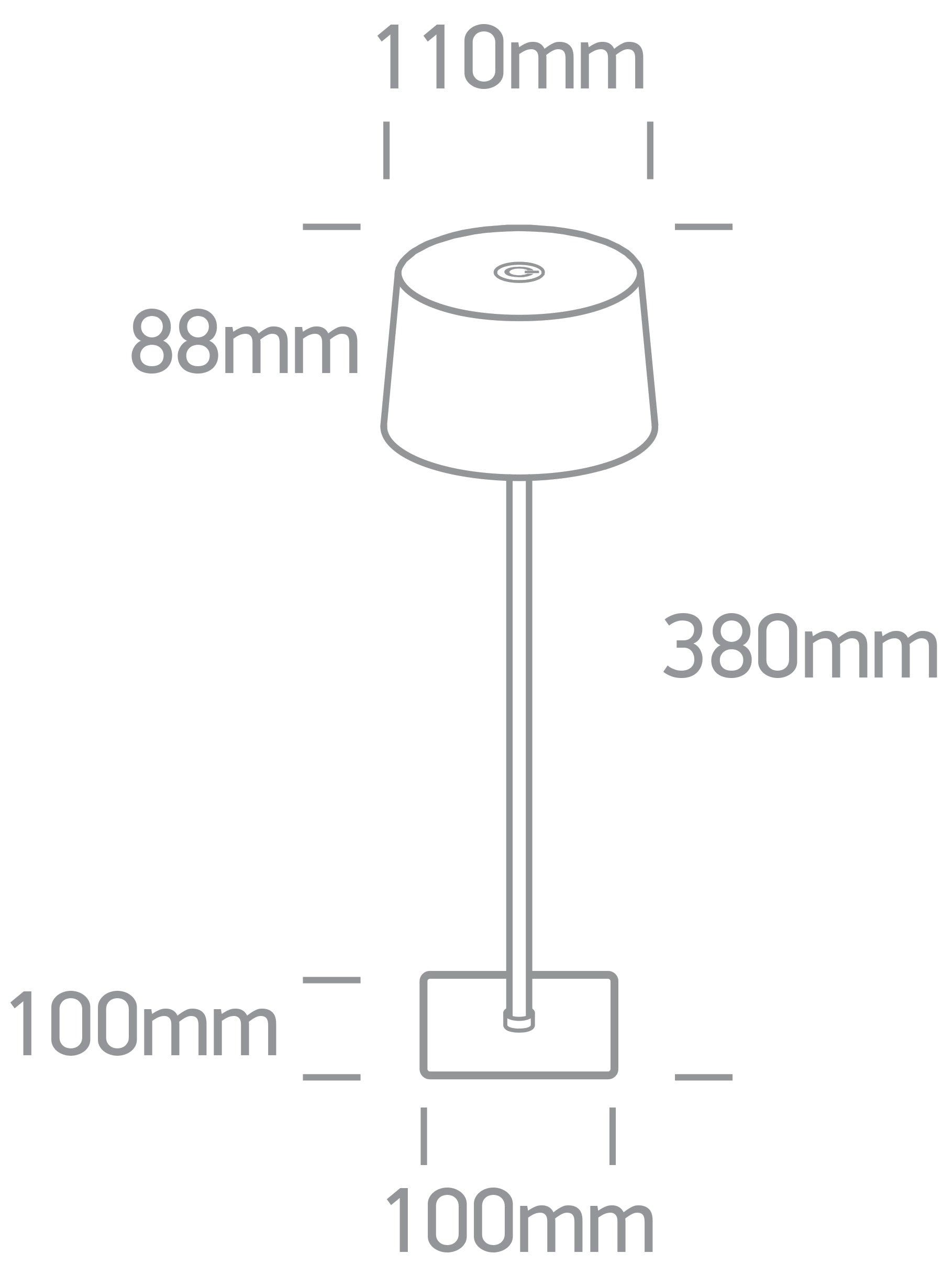 Rechargeable table lamp suitable for indoor outdoor use, IP54.