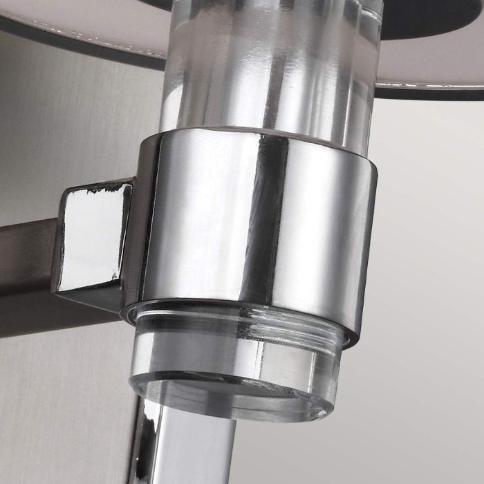 The Prospect Park takes a traditional profile and modernises it with updated design elements to create a period uptown vibe. Sleek Satin Nickel arms are accented with crisp Chrome components, and bands of Chrome feature at the top and bottom of each cylindrical Opal Etched glass shade. Clear pressed crystal on each stem elevates the tailored look with a bit of glamour.