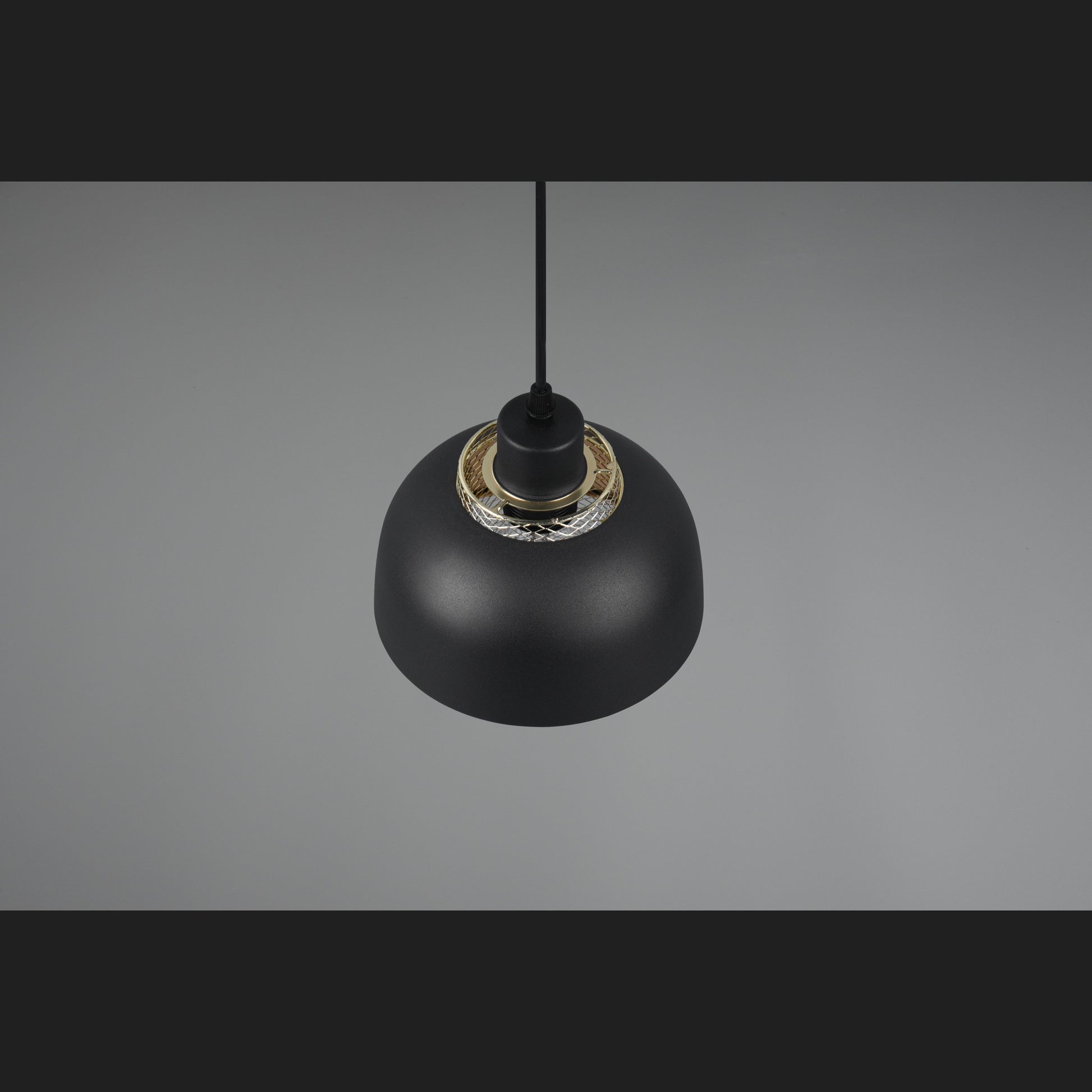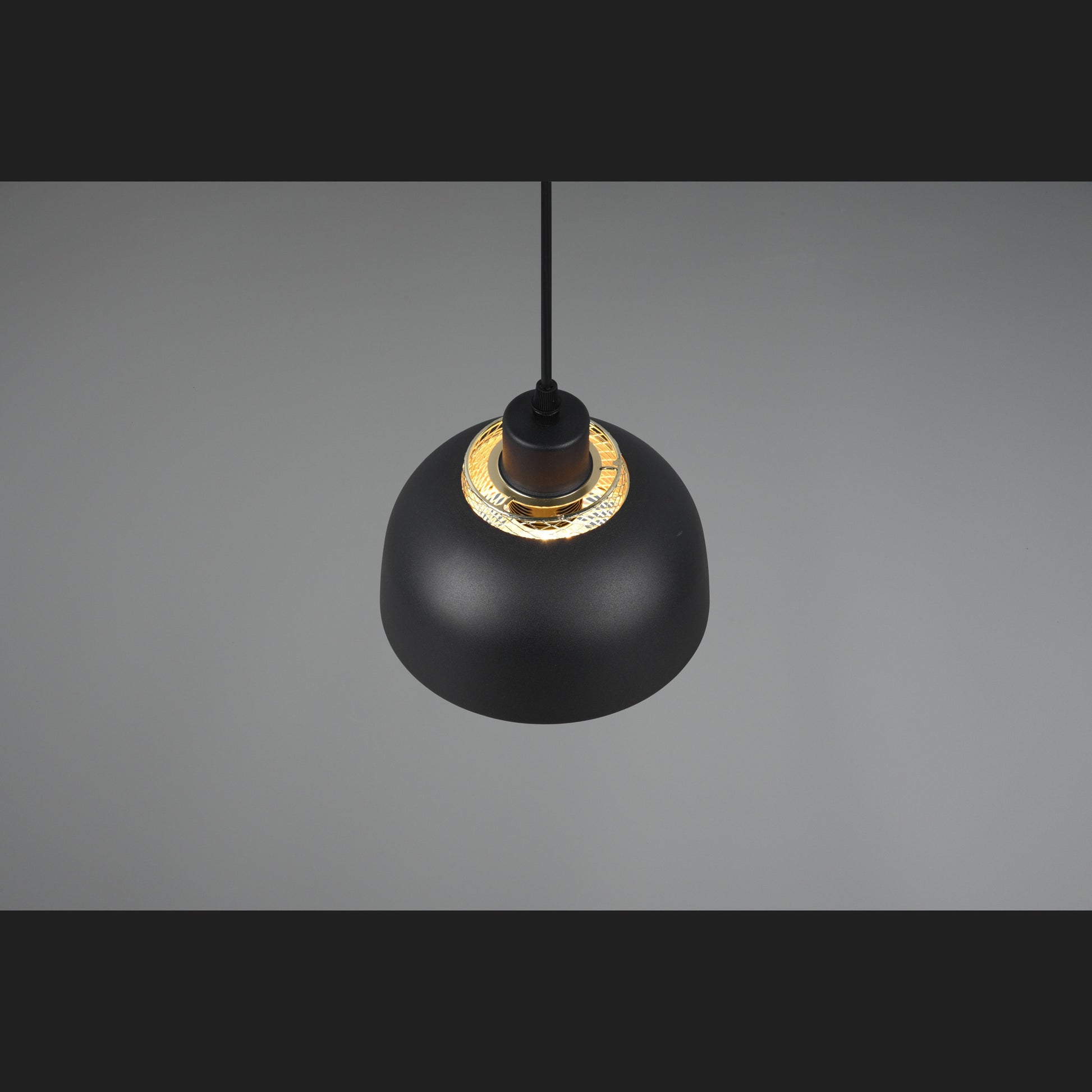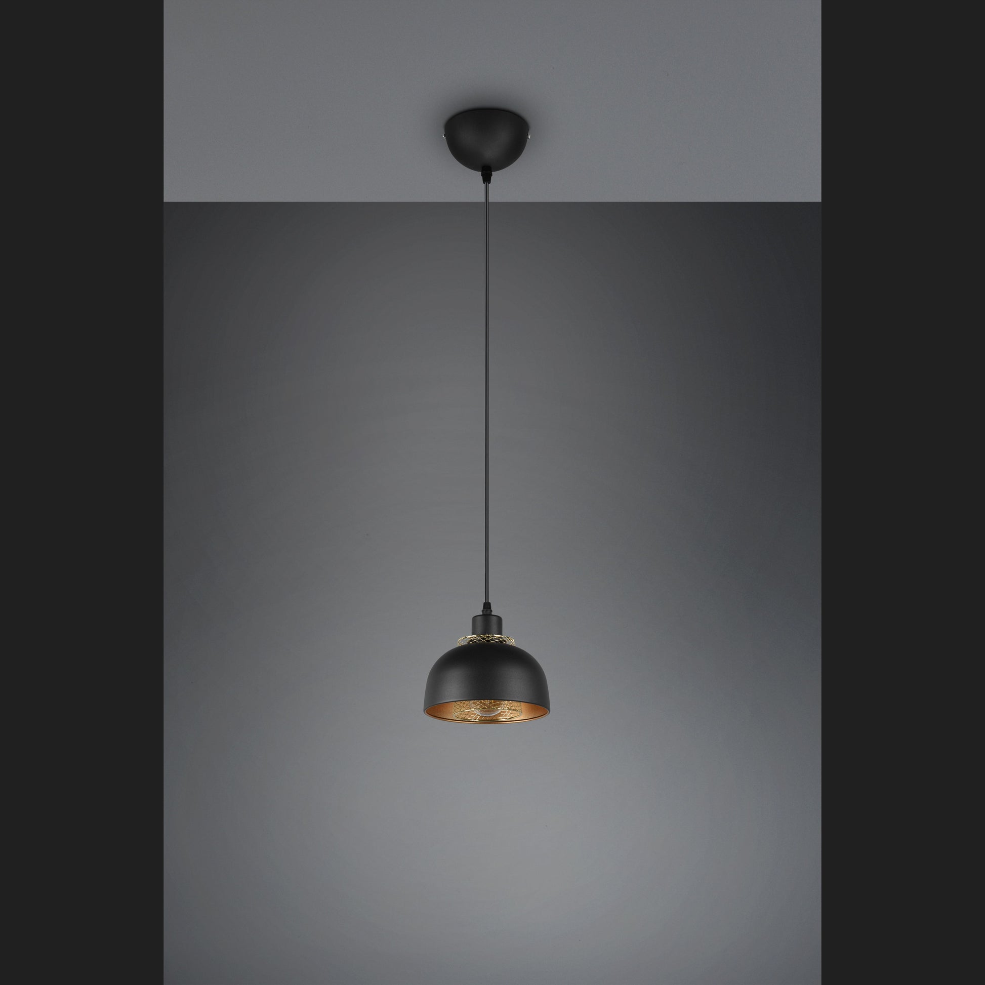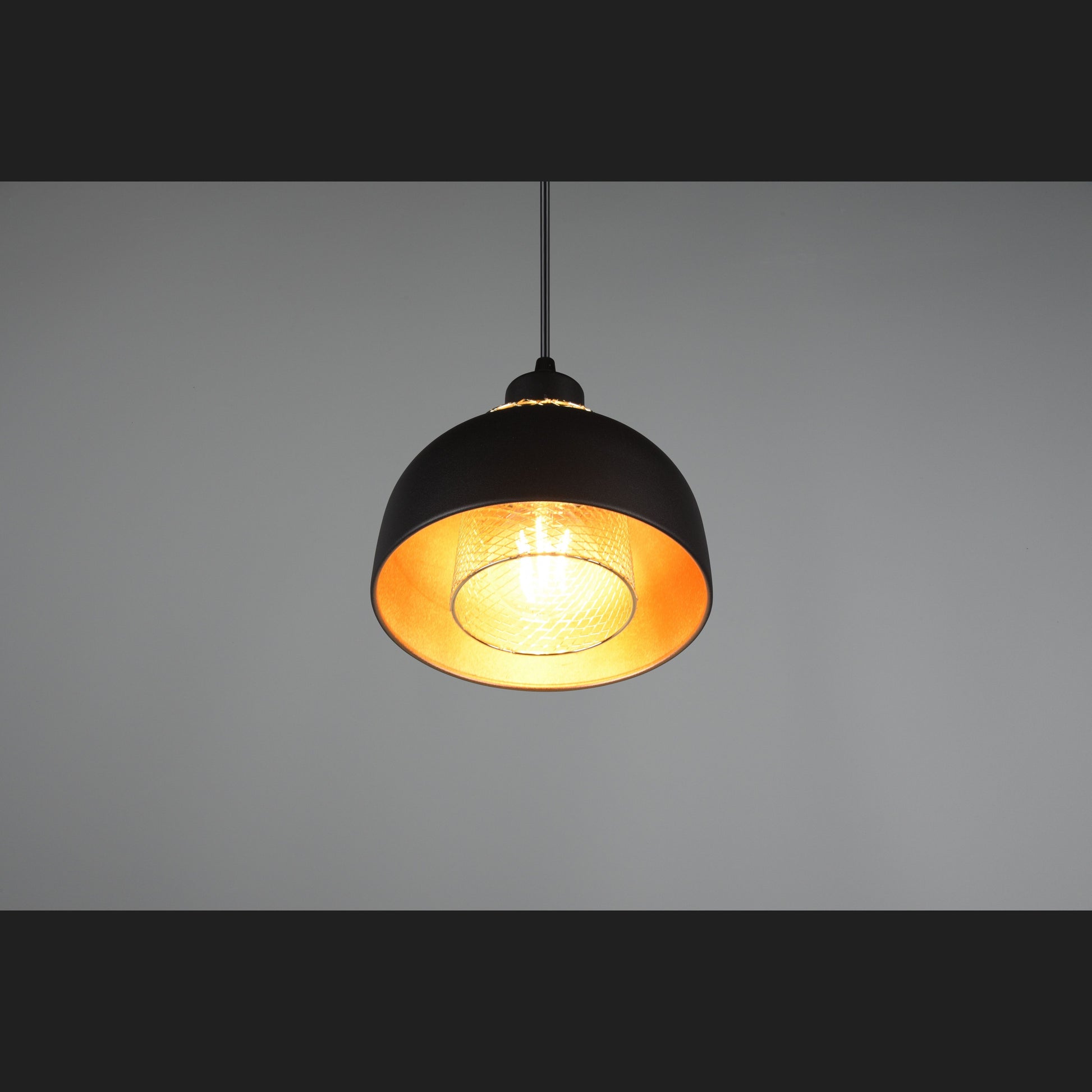 The one-light pendant luminaire of the PUNCH series convinces with its industrial look and fits perfectly into modern, puristic furnishing styles in your kitchen or dining area. The large shade, which is complemented on the inside by a second smaller shade in a lattice look as a design element, comes into its own wonderfully and provides special lighting effects. The stylish shape and colour design of the luminaire in matt black and gold colours gives your own four walls an industrial ambience. For energy-saving lighting, it is recommended to use an LED illuminant. These are an optimal alternative to conventional halogen lamps and stand for a high quality of light and energy savings of up to 80%. In addition, LED lamps help you benefit from a long service life, low heat generation and at the same time protect the environment.