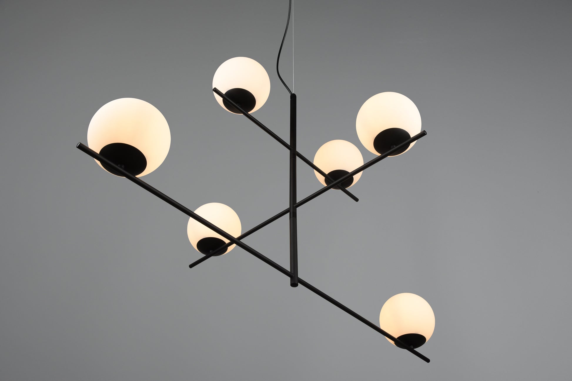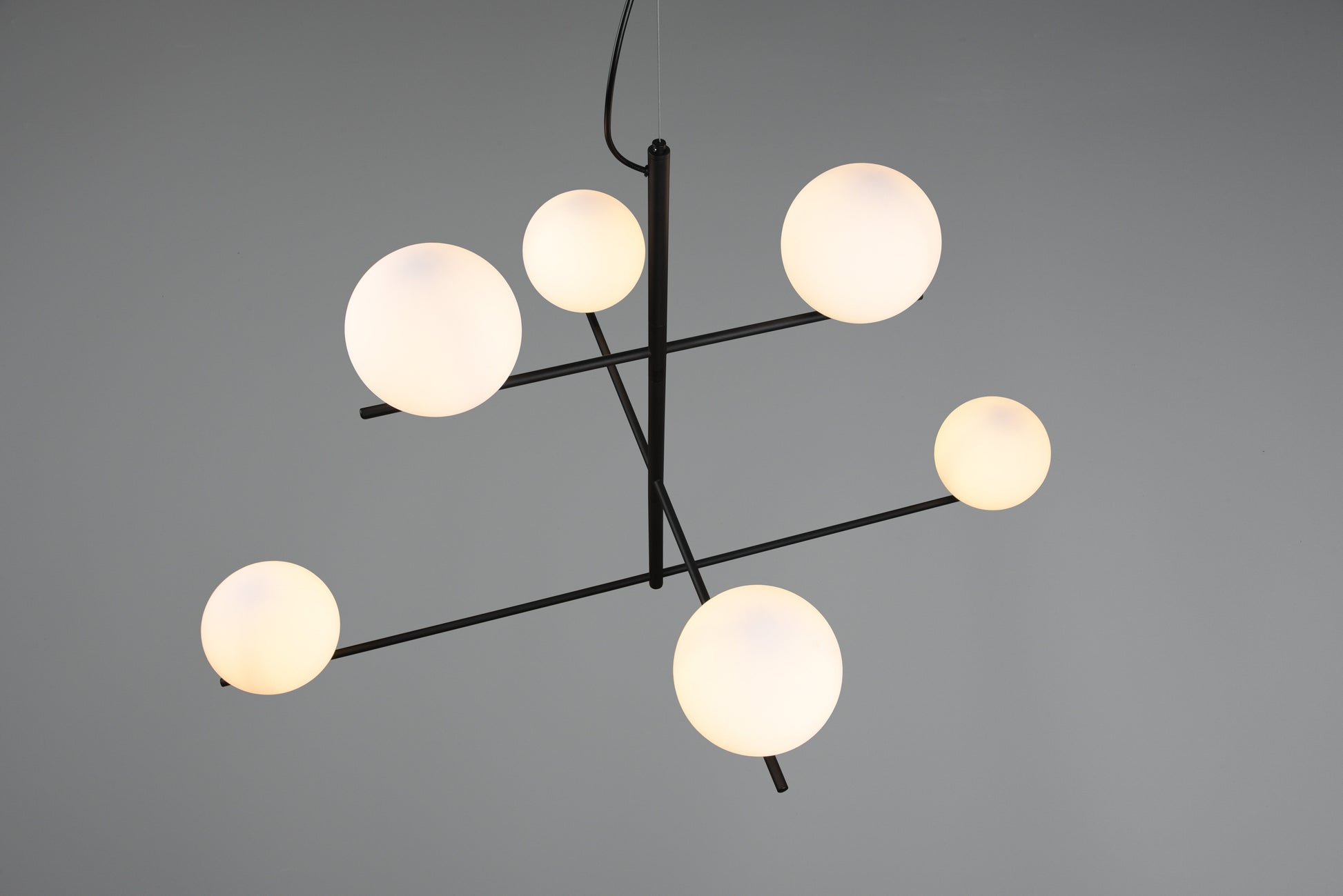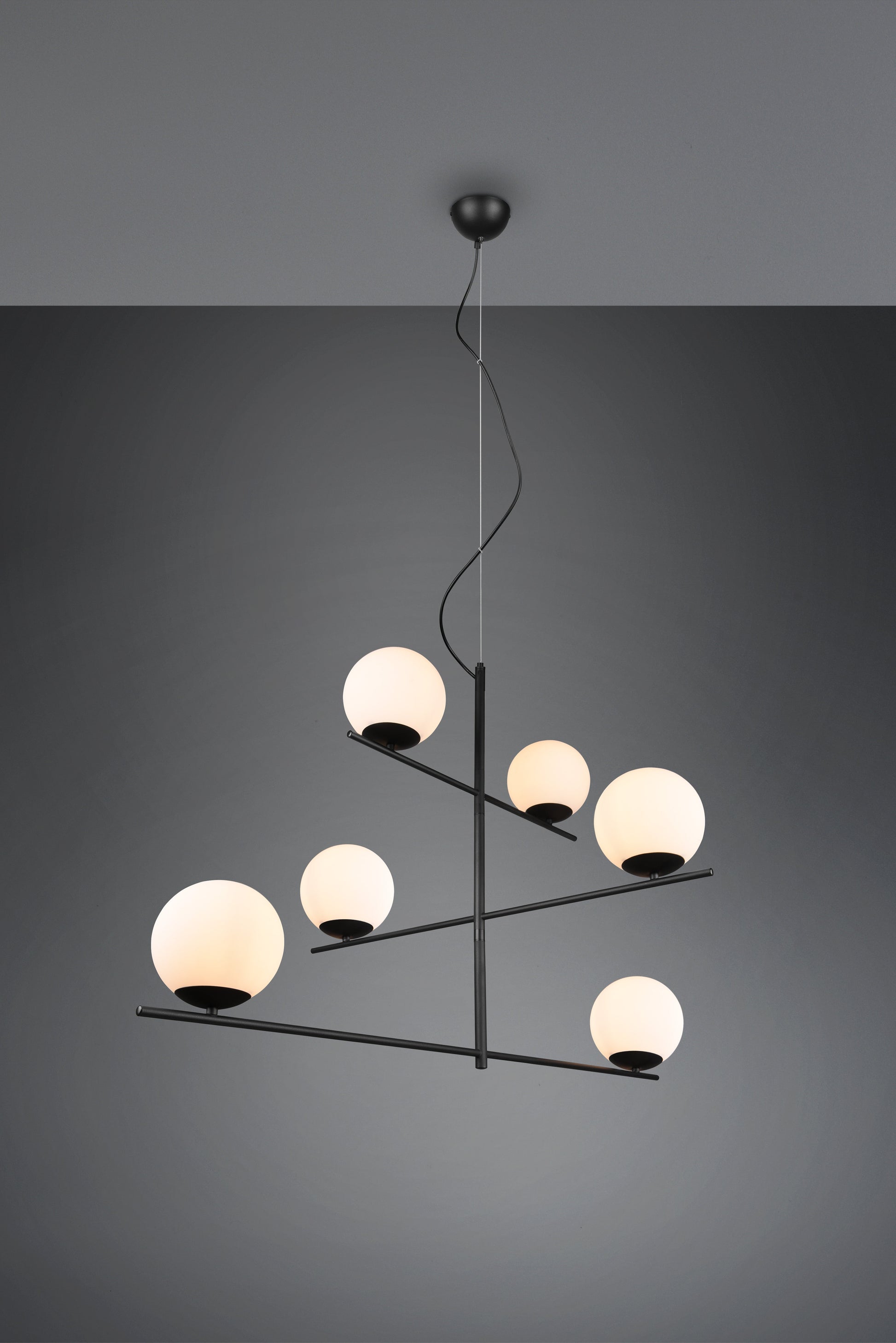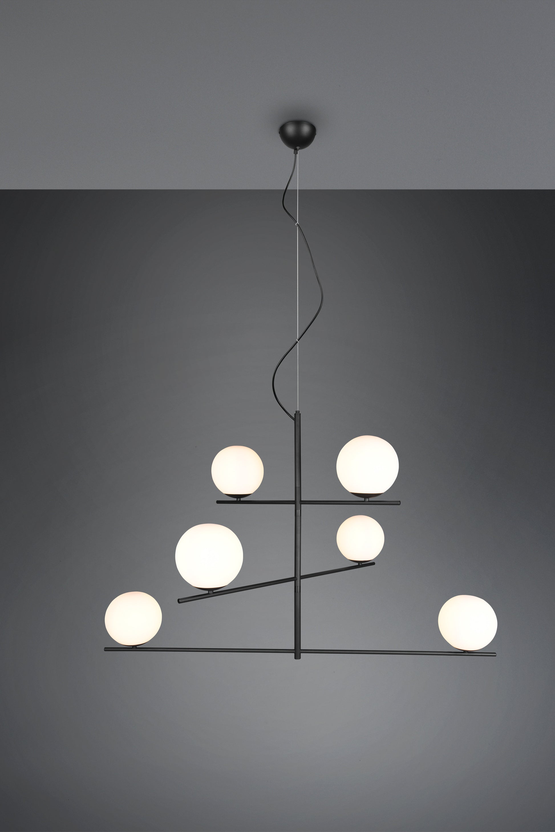 Simple and absolutely stylish! Whether a simple, straightforward interior style or something more playful – the luminaires of the PURE series provide simple decorative accents to add a touch of elegance to any look. The simple style is absolutely contemporary and can be combined with both striking and discreet elements. The swivelling elements of the six-flame pendant luminaire can be individually aligned. Thus, the luminaire is perfect to illuminate the dining table and to underline the own living style. The purist-minimalist design of the PURE is a mix of noble metal optics in matt black combined with white glass. For energy-saving lighting, it is recommended to use an LED illuminant. These are an optimal alternative to conventional halogen lamps and stand for a high quality of light and energy savings of up to 80%. In addition, LED lamps help you benefit from a long service life, low heat generation and at the same time protect the environment.
