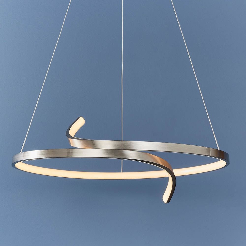 The Rafe is an elegant and slim line suspended pendant with a sophisticated designer look. Includes integrated LED and features a satin nickel plate finish.
