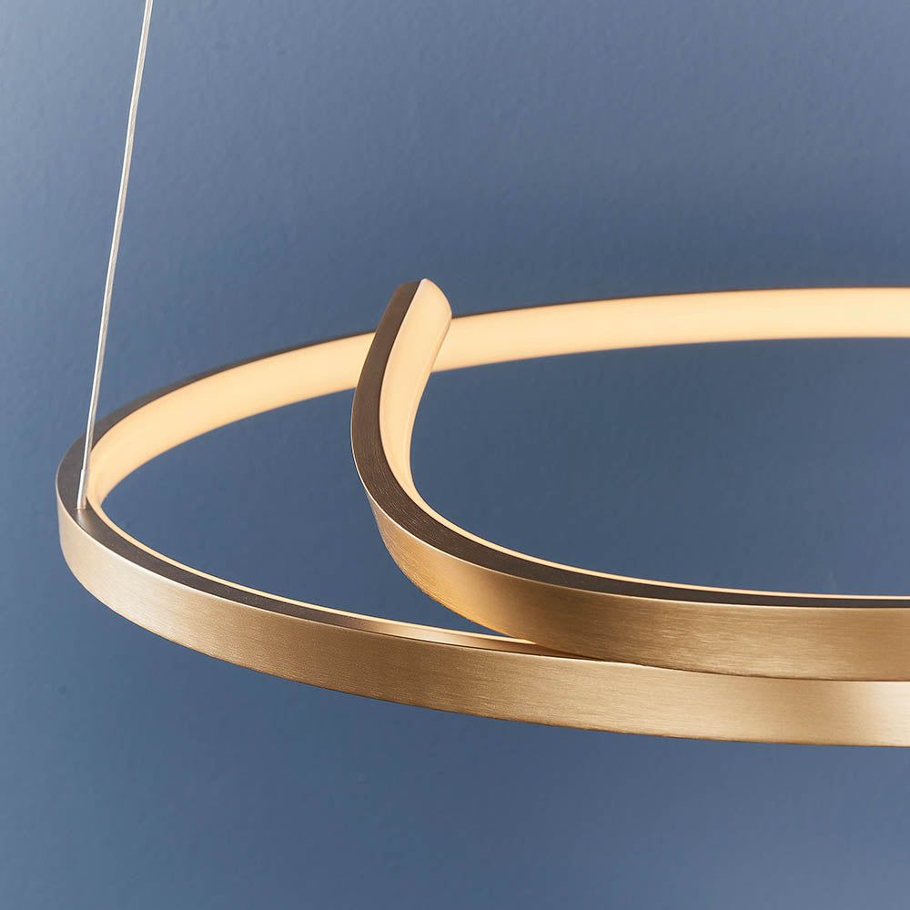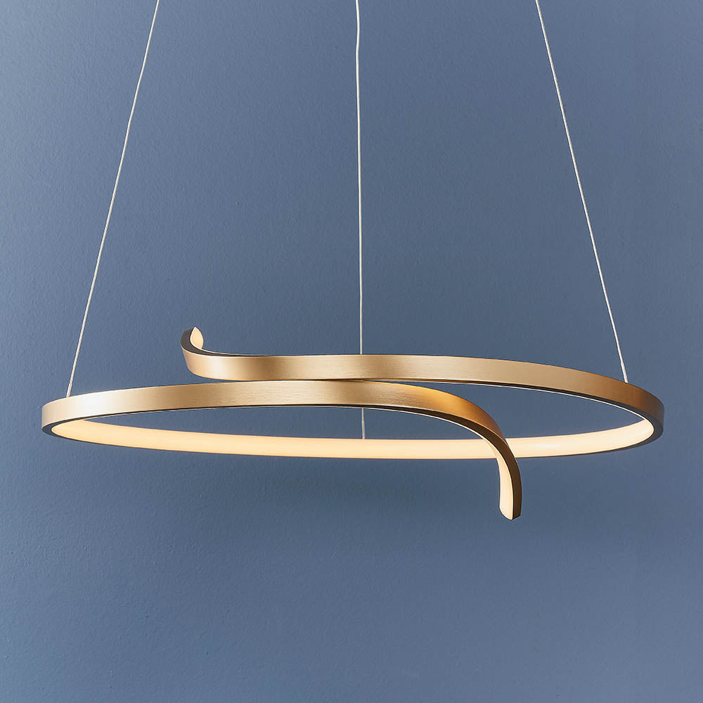 The Rafe is an elegant and slim line suspended pendant with a sophisticated designer look. Includes integrated LED featured in a matt brushed gold effect finish.