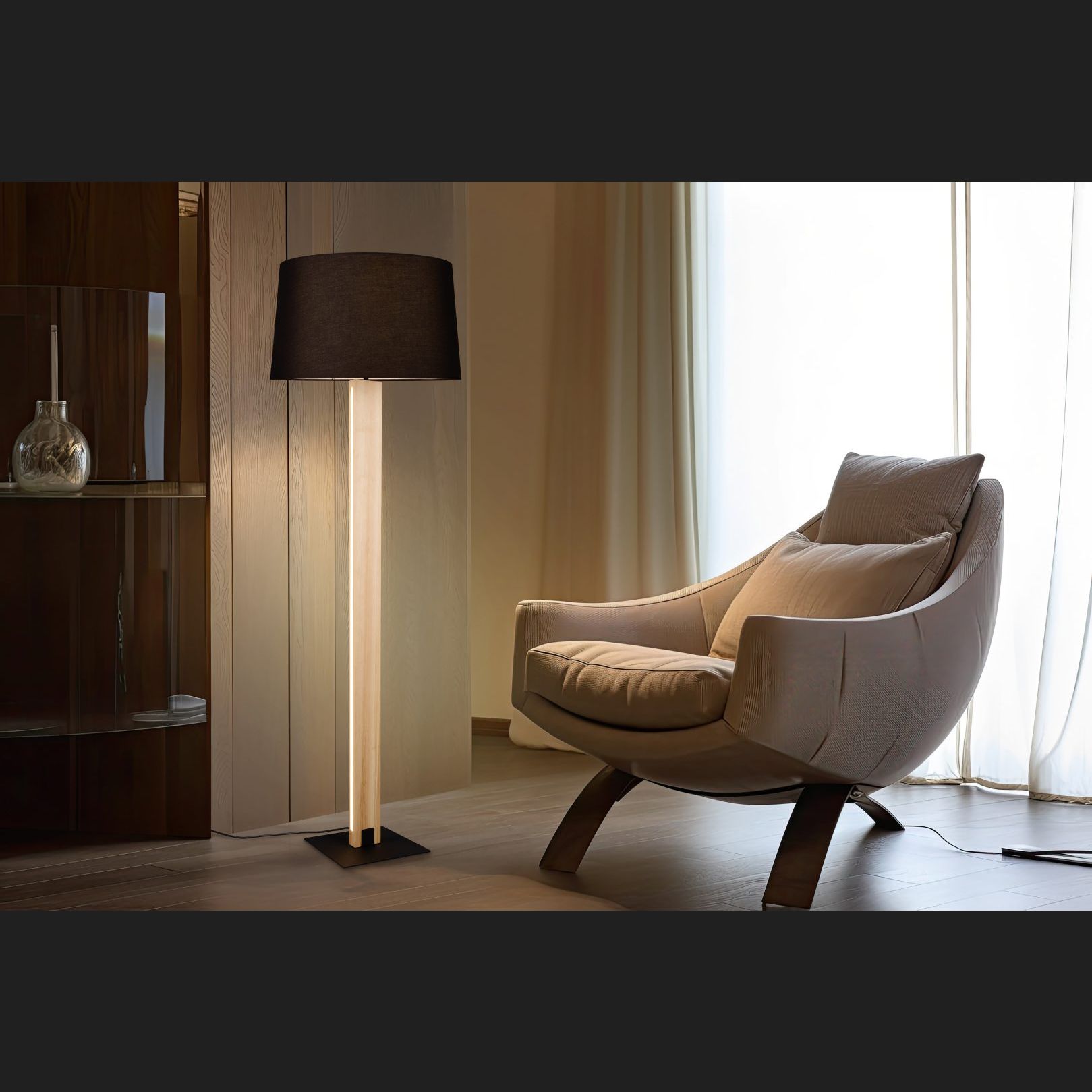 Natural materials are particularly popular at the moment and create a cosy atmosphere that invites you to linger. The RAHUL floor lamp gives your home a unique charm thanks to its minimalist design and the use of wood and fabric. The lampshade also provides a pleasantly soft light. The luminaire is equipped with a discreet switch on the body that switches the two light sources on and off separately and continuously adjusts the brightness using an integrated dimmer. The light source on the body of the RAHUL creates an impressive wow effect. The combination of wood and black gives the light a modern and inviting look, which makes it easy to integrate into various interior design concepts. The use of LED light sources is recommended for energy-saving lighting. These are an ideal alternative to conventional halogen light sources and offer high light quality and energy savings of up to 80%. With LED light sources, you also benefit from a long service life and low heat generation while protecting the environment.