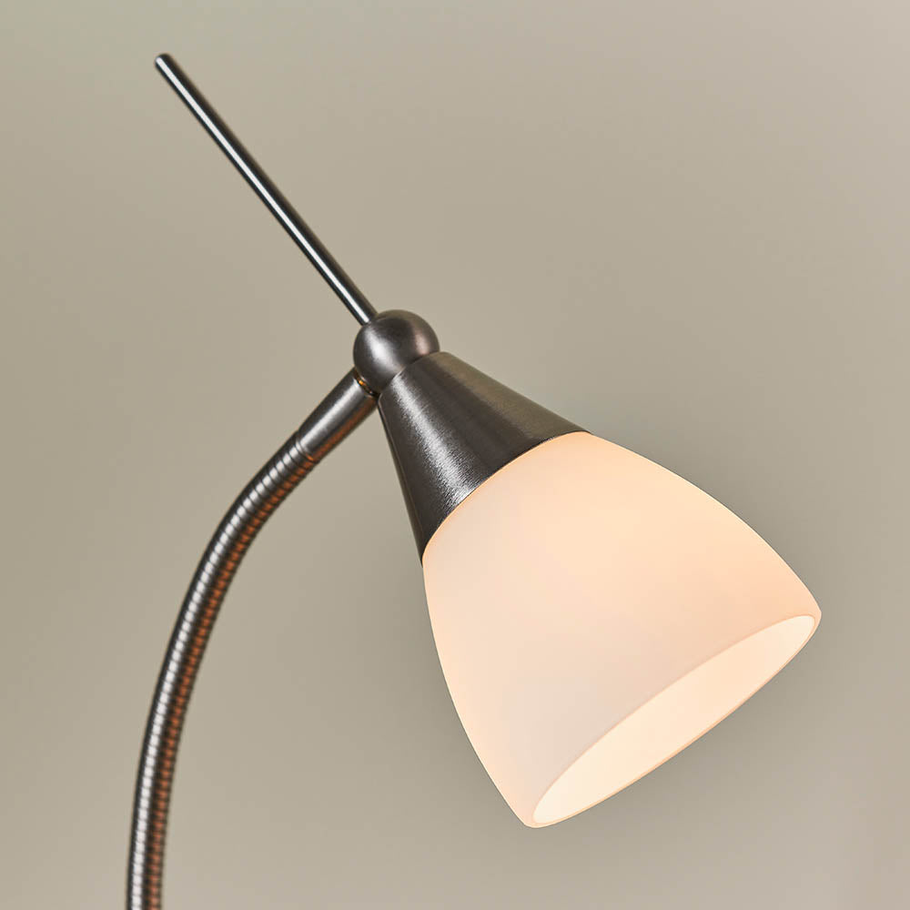 A task table lamp with a satin chrome finish and an opal glass shade. Complete with lamp and touch 3 stage dimmer switch for turning the lamp on and off. Matching floor lamp and other colour options available