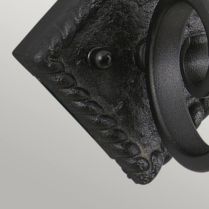 These black Rectory wall lights are authentic hand-made fittings that blend wrought iron ruggedness and craftsman-made elegance to give a truly medieval appearance.