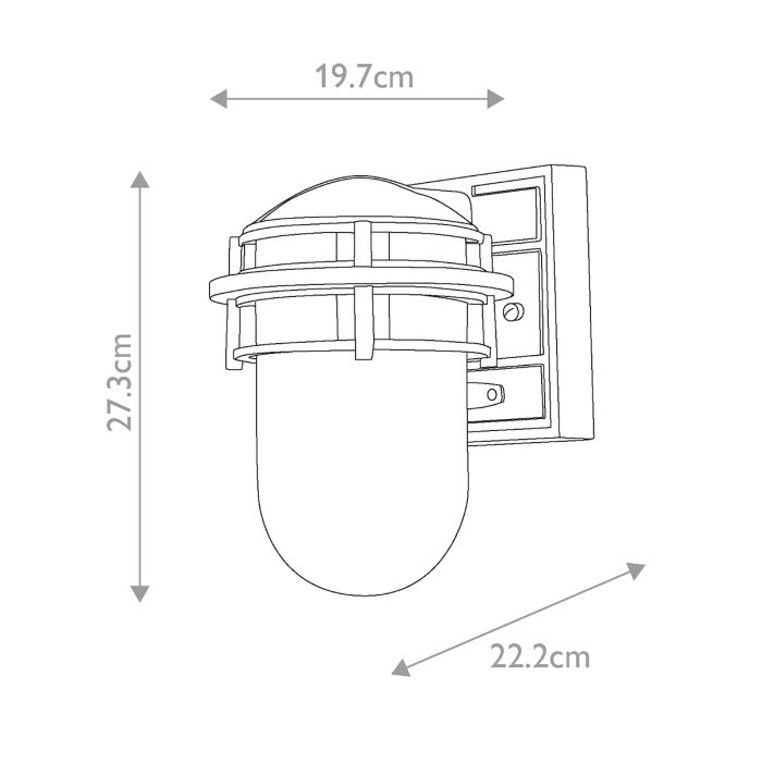 Reef’s contemporary nautical shape features a sleek capsule of inside etched glass captured by bold rings of cast aluminium. Available in Hematite or Victorian Bronze finishes.