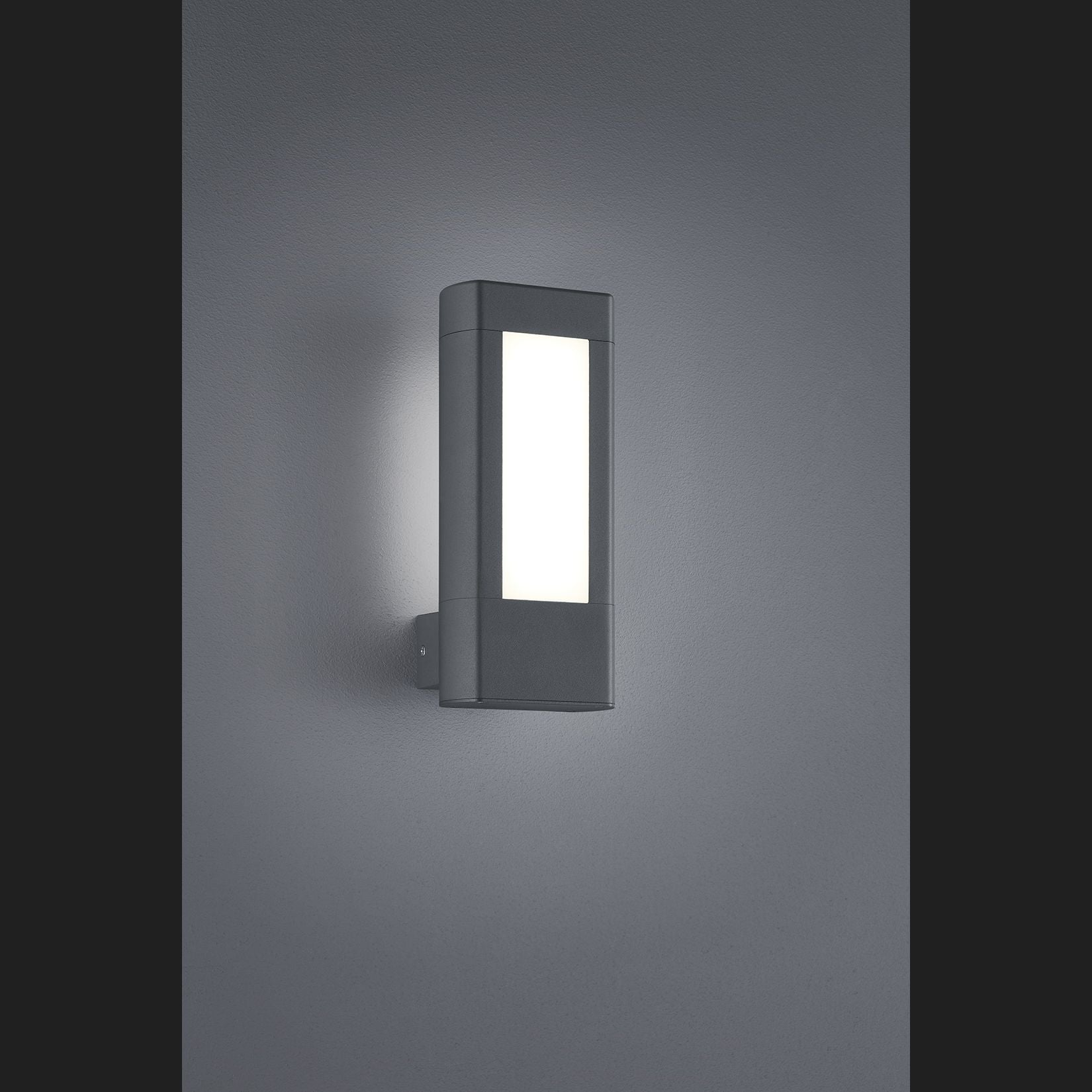 The wall light from the RHINE series has been combined in a modern design. Create a modern, decorative eye-catcher on your house wall. With an IP54 protection rating, the light is ideally equipped for outdoor use. This protection rating means that it is protected against the ingress of dust and spray water. With a height of 25 cm, the light has an appealing height. With its anthracite-coloured cast aluminium housing, the luminaire blends effortlessly into any colour scheme. In addition, the luminaire features modern LED technology, which is characterised by high light quality and energy efficiency. Compared to conventional halogen lamps, up to 80% of energy costs can be saved. In addition, LED light sources have a long service life, produce less heat and protect the environment.