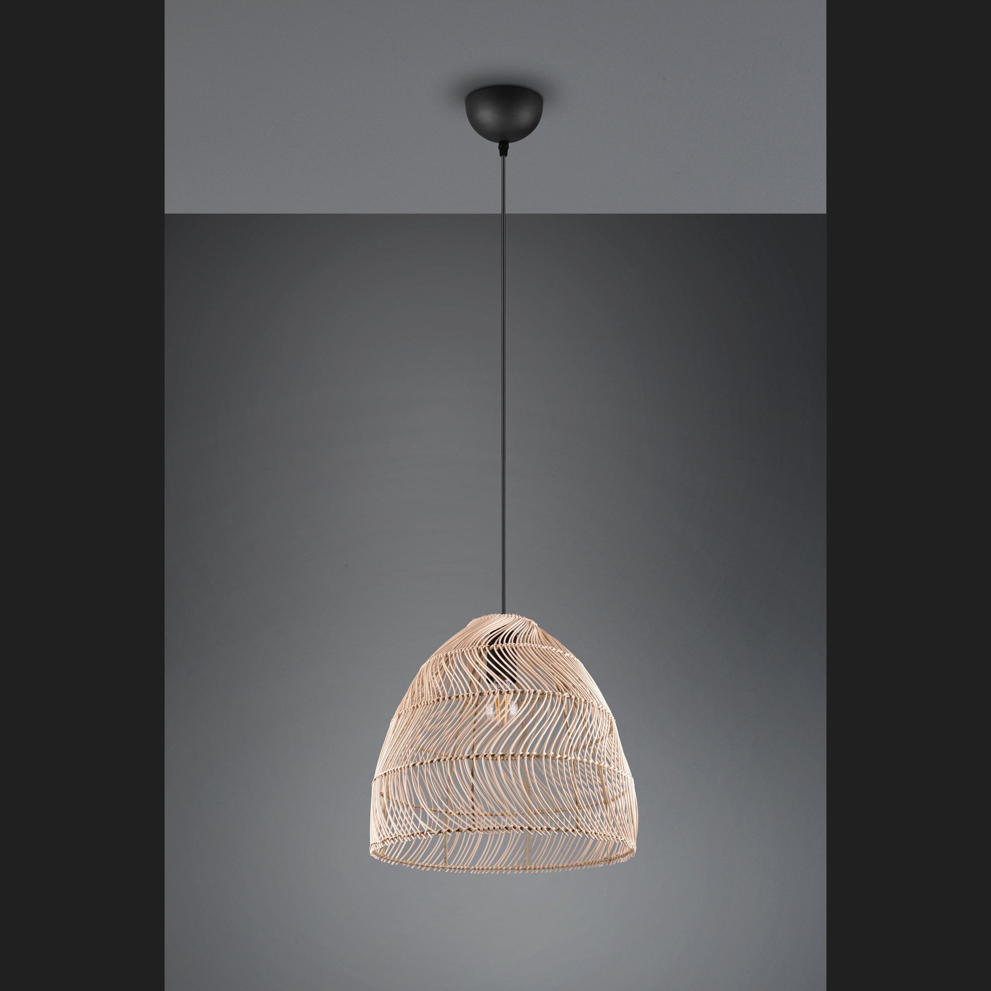 With its combination of natural materials, the single-flame RIKE pendant light reflects the popular boho living trend. The lampshade made of trendy woven rattan brings cosiness and lightness and creates special lighting and decorative accents in your living area. The modern design in natural rattan wickerwork makes the light an eye-catcher in your living area and blends in perfectly with your interior style. For energy-saving lighting, it is recommended to use an LED illuminant. These are an optimal alternative to conventional halogen lamps and stand for a high quality of light and energy savings of up to 80%. In addition, LED lamps help you benefit from a long service life, low heat generation and at the same time protect the environment.