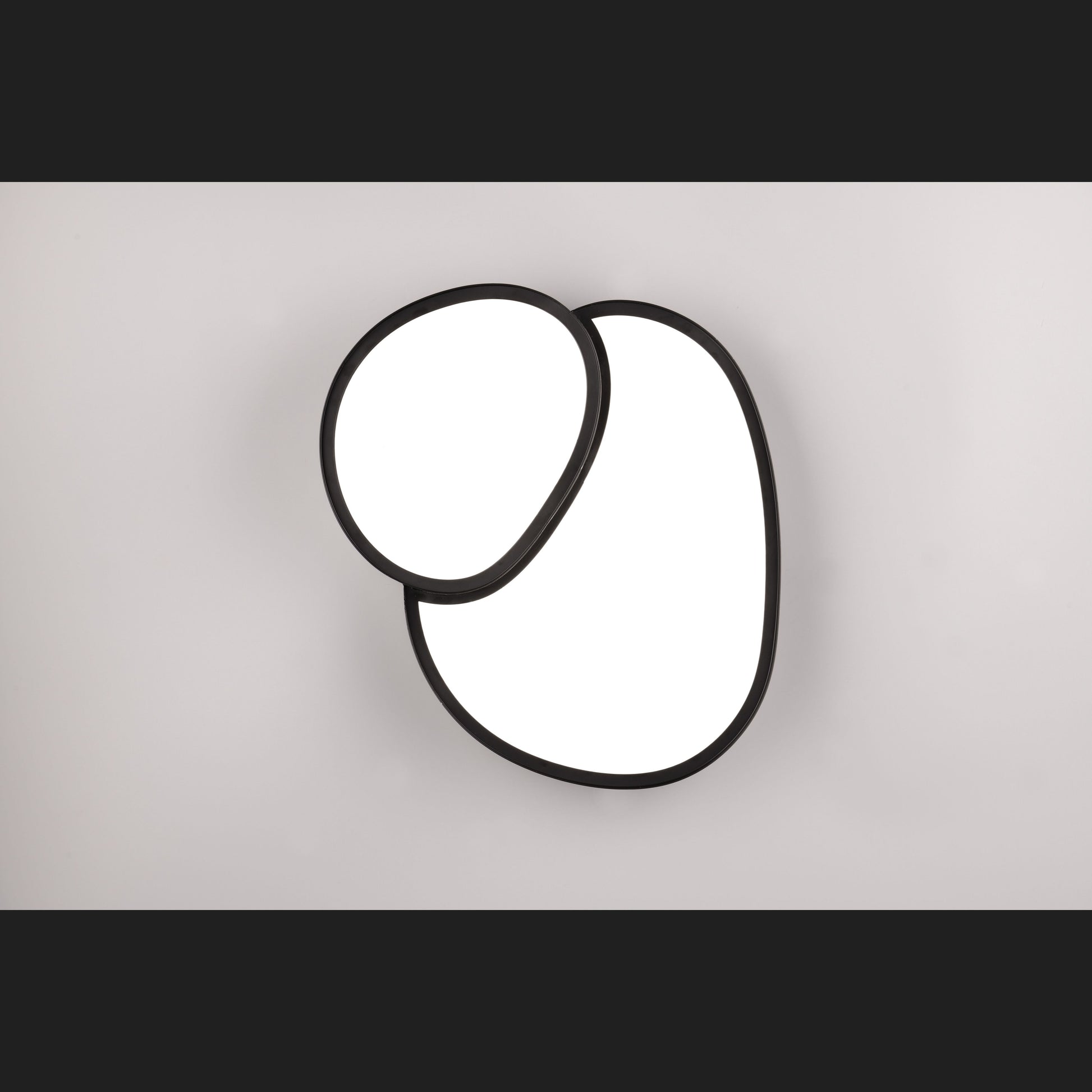 With its organic shapes, the RISE ceiling light creates a cosy atmosphere in your living or sleeping area. The unique design of the two illuminated surfaces makes a powerful statement. Even if you are already relaxing comfortably on the couch, you can easily adjust the brightness and light colour from a distance using the remote control supplied. Perfect for cosy movie nights! Its simple matt black colour scheme sets decorative accents with a feel-good character. The luminaire also features modern LED technology, which is characterised by high light quality and energy efficiency. Compared to conventional halogen light sources, up to 80% of energy costs can be saved. LED light sources also have a long service life, produce less heat and protect the environment.