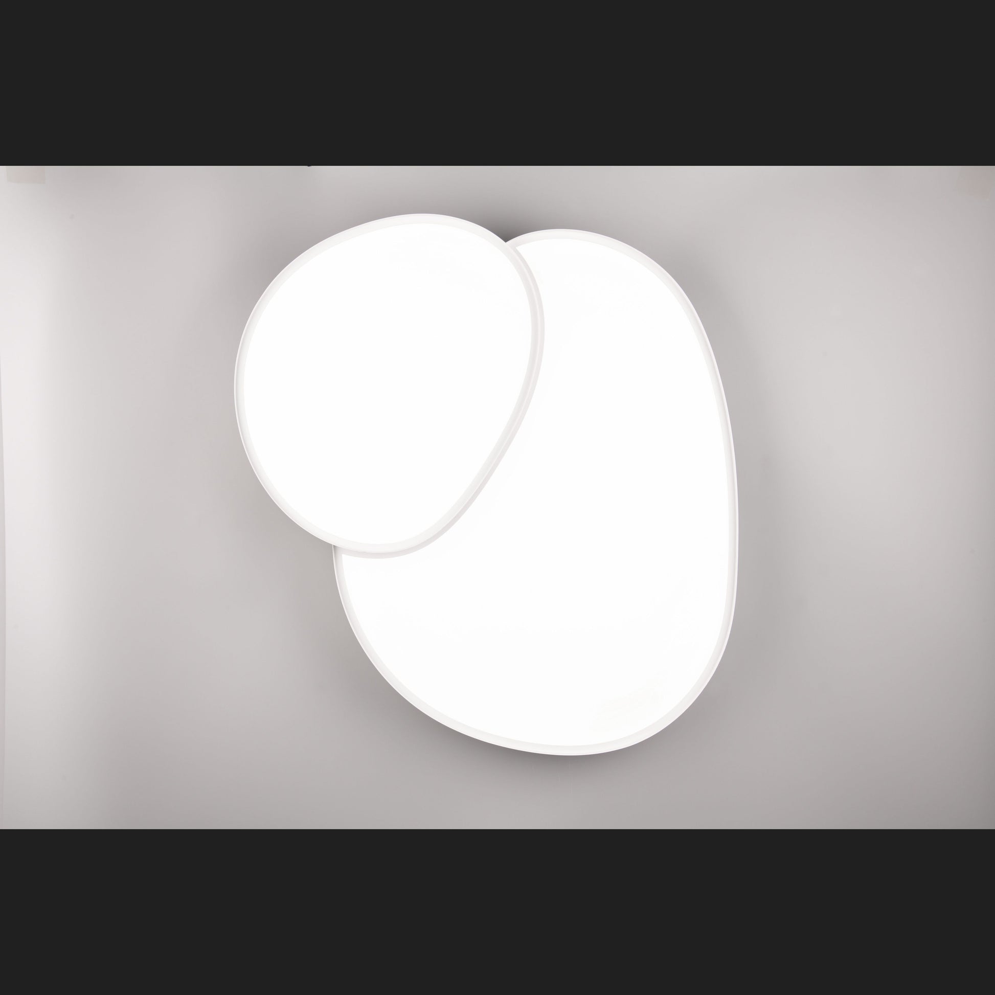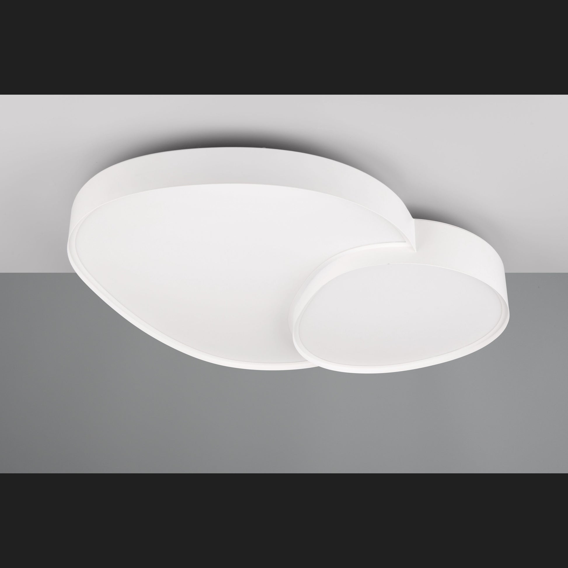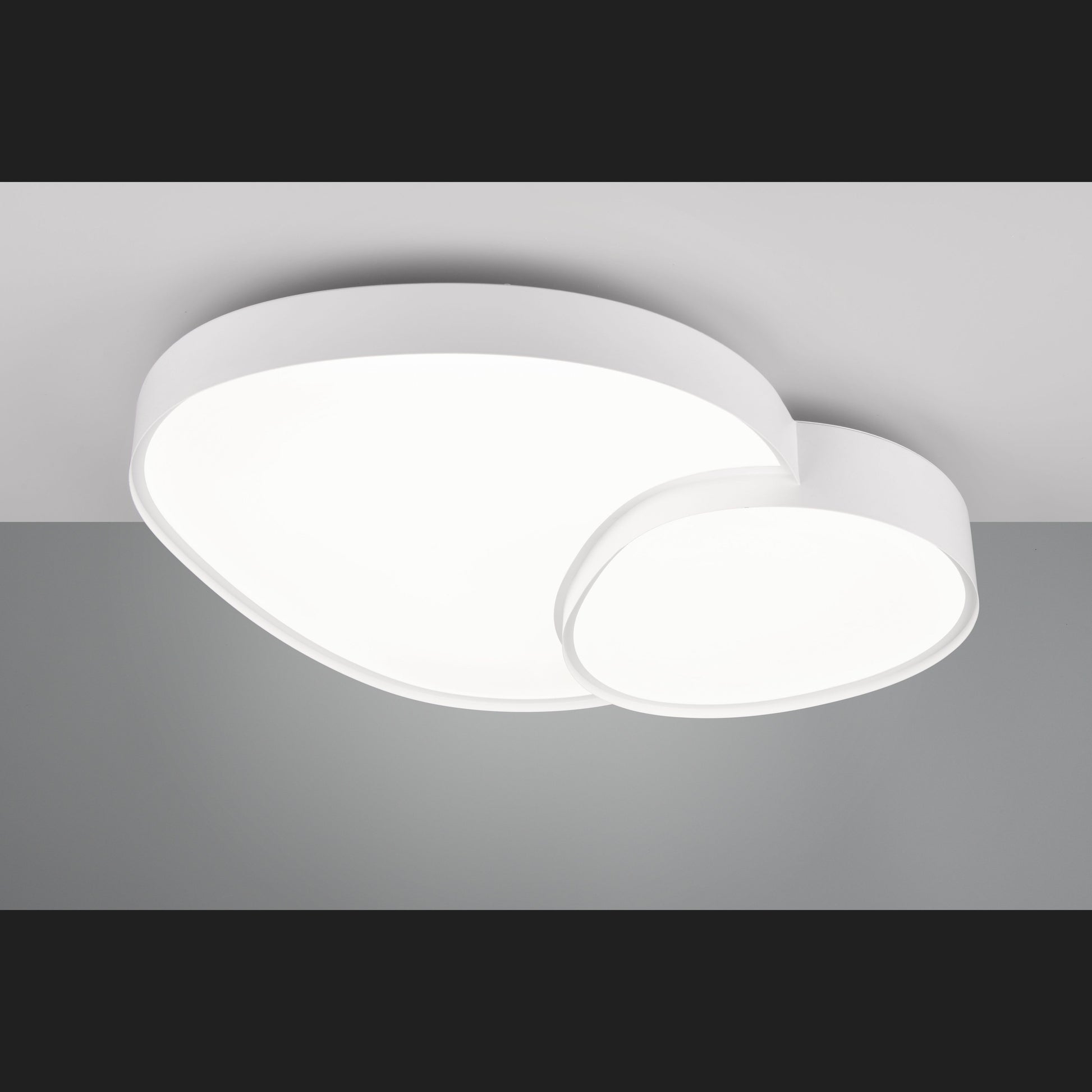 With its organic shapes, the RISE ceiling light creates a cosy atmosphere in your living or sleeping area. The unique design of the two illuminated surfaces makes a powerful statement. Even if you are already relaxing comfortably on the couch, you can easily adjust the brightness and light colour from a distance using the remote control supplied. Perfect for cosy movie nights! Its simple matt white colour scheme sets decorative accents with a feel-good character. The luminaire also features modern LED technology, which is characterised by high light quality and energy efficiency. Compared to conventional halogen light sources, up to 80% of energy costs can be saved. LED light sources also have a long service life, produce less heat and protect the environment.