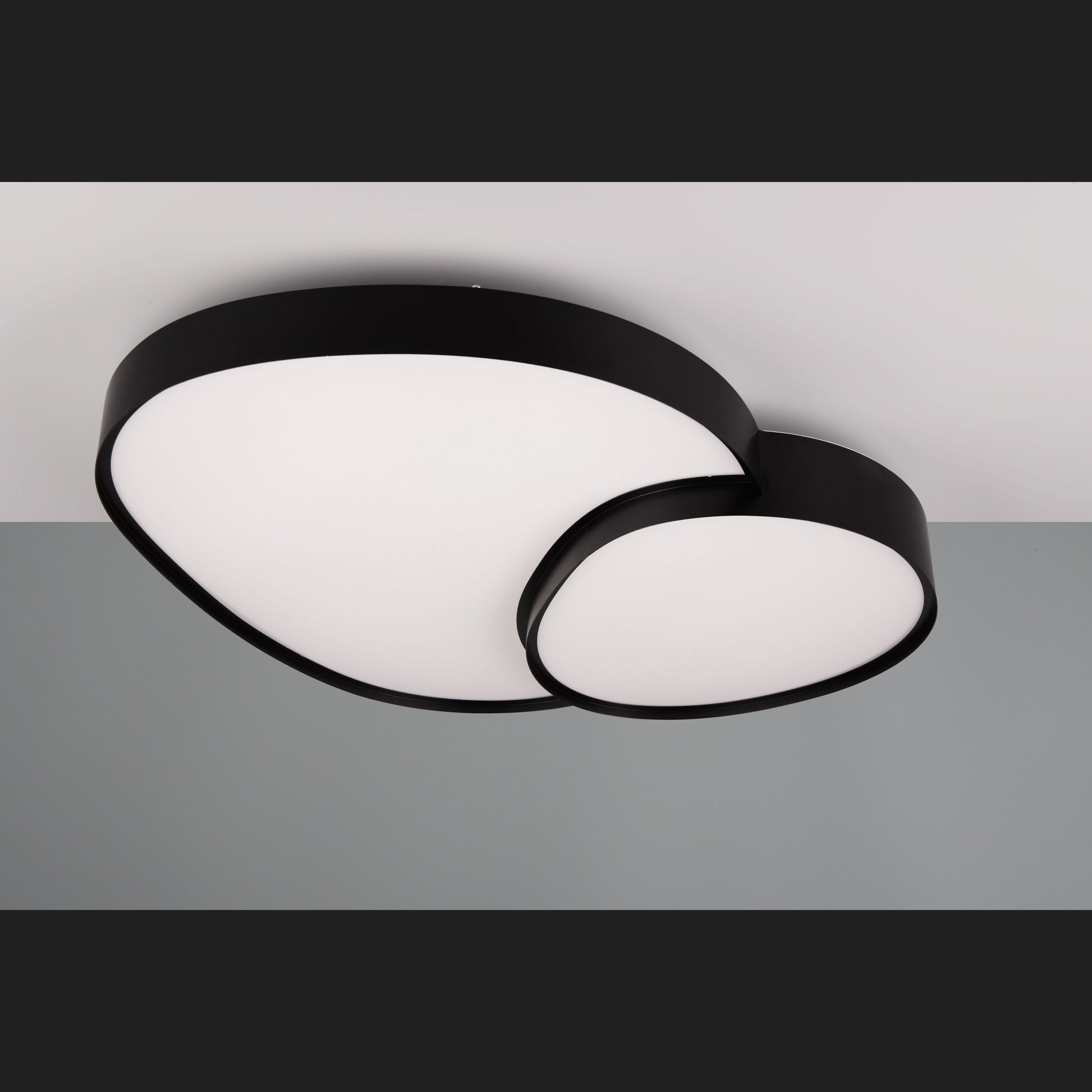 With its organic shapes, the RISE ceiling light creates a cosy atmosphere in your living or sleeping area. The unique design of the two illuminated surfaces makes a powerful statement. Even if you are already relaxing comfortably on the couch, you can easily adjust the brightness and light colour from a distance using the remote control supplied. Perfect for cosy movie nights! Its simple matt black colour scheme sets decorative accents with a feel-good character. The luminaire also features modern LED technology, which is characterised by high light quality and energy efficiency. Compared to conventional halogen light sources, up to 80% of energy costs can be saved. LED light sources also have a long service life, produce less heat and protect the environment.