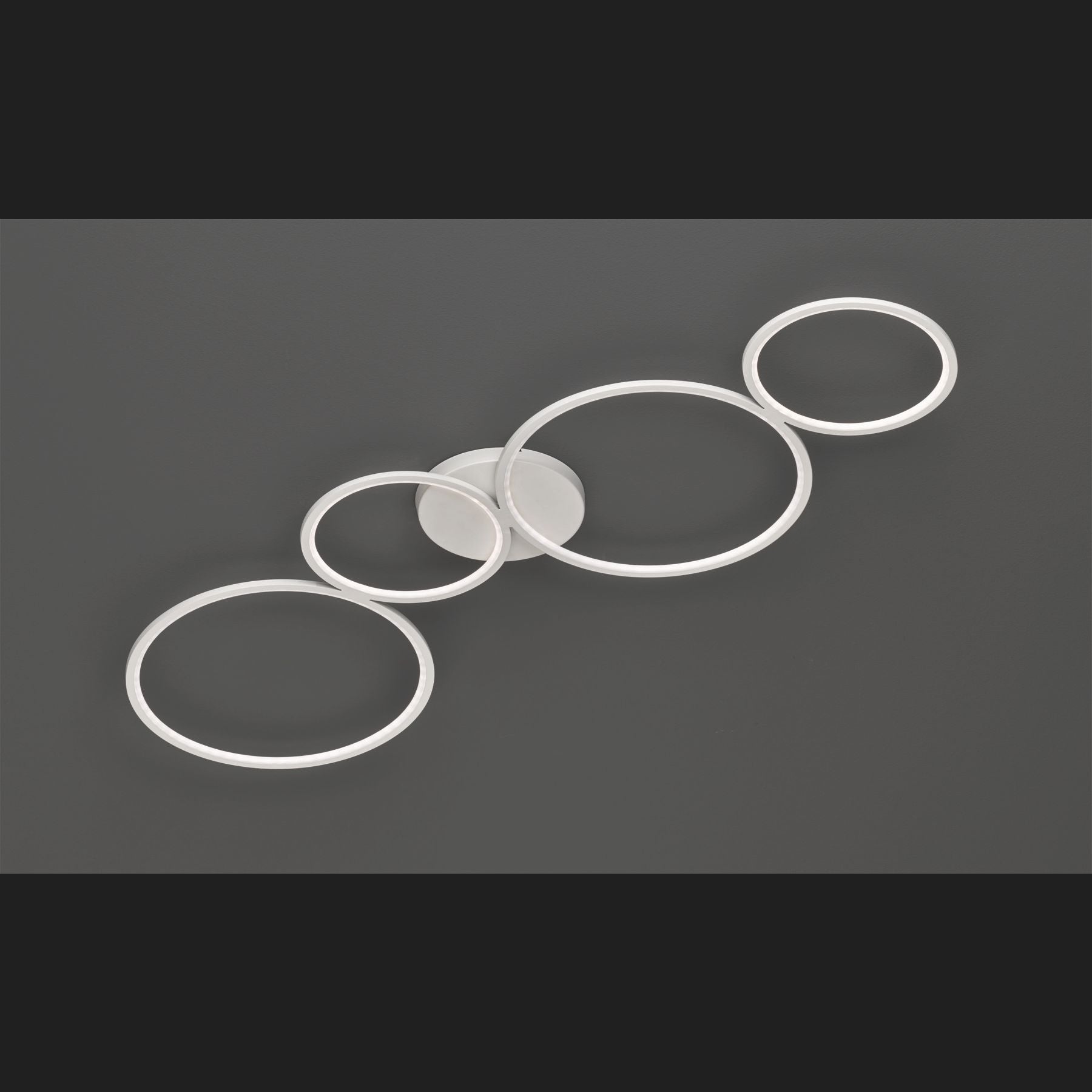 With its four rings of different diameters hanging from each other, the RONDO ceiling light is a real eye-catcher. The ceiling light has an integrated dimmer that is controlled via the light switch. This allows flexible control of the brightness of the LEDs installed on the inside of each circle. The 97 cm wide ceiling light is a real decorative element and stylishly enhances any living space. Thanks to the matt white colour scheme, the light can be combined with many furnishing styles. In addition, the luminaire features modern LED technology, which is characterised by high light quality and energy efficiency. Compared to conventional halogen lamps, up to 80% of energy costs can be saved. In addition, LED light sources have a long service life, produce less heat and protect the environment.
