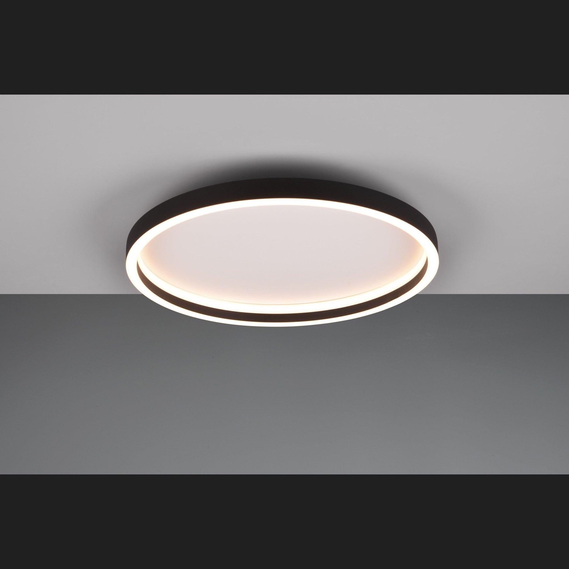 Anyone who thinks black and purist is monotonous can be convinced otherwise with the ROTONDA ceiling light. The minimalist luminaire makes an expressive statement with its geometric shape and at the same time radiates a pleasant play of light into your living space with its clear lines. In the bedroom or hallway, ROTONDA creates a great lighting effect with feel-good flair. The timeless metal design in matt black is an asset to any interior. The luminaire also features modern LED technology, which is characterised by high light quality and energy efficiency. Compared to conventional halogen light sources, up to 80% of energy costs can be saved. LED light sources also have a long service life, produce less heat and protect the environment.