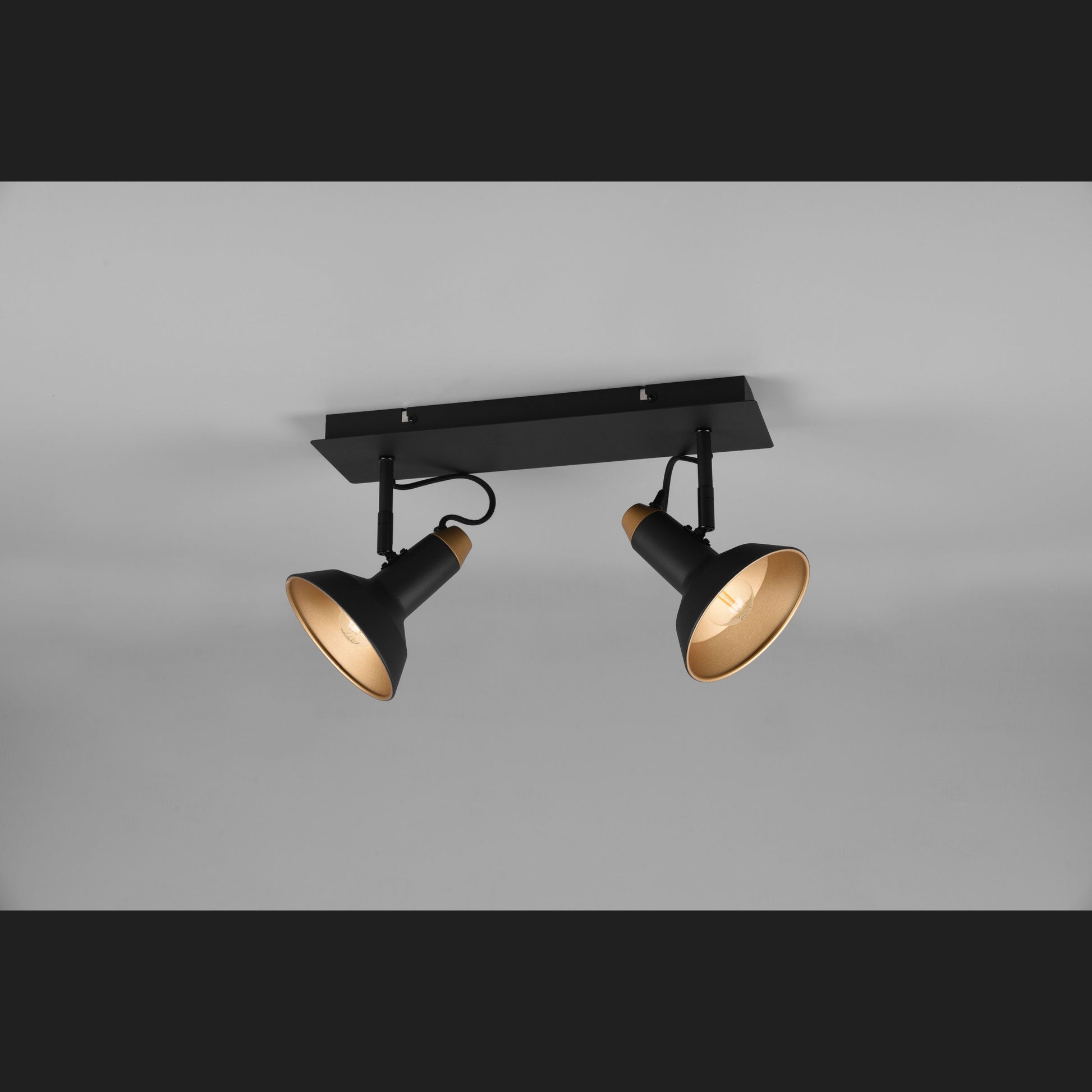 The luminaires of the ROXIE series have a modern design and can be used flexibly. The two-lamp ceiling light is ideal as a supporting light source in the kitchen or in small rooms due to the movable spots and gives your home a cosy ambience. The luminaire is in stylish black matt and gold, exuding lightness and elegance. For energy-saving lighting, it is recommended to use an LED illuminant. These are an optimal alternative to conventional halogen lamps and stand for a high quality of light and energy savings of up to 80%. In addition, LED lamps help you benefit from a long service life, low heat generation and at the same time protect the environment.