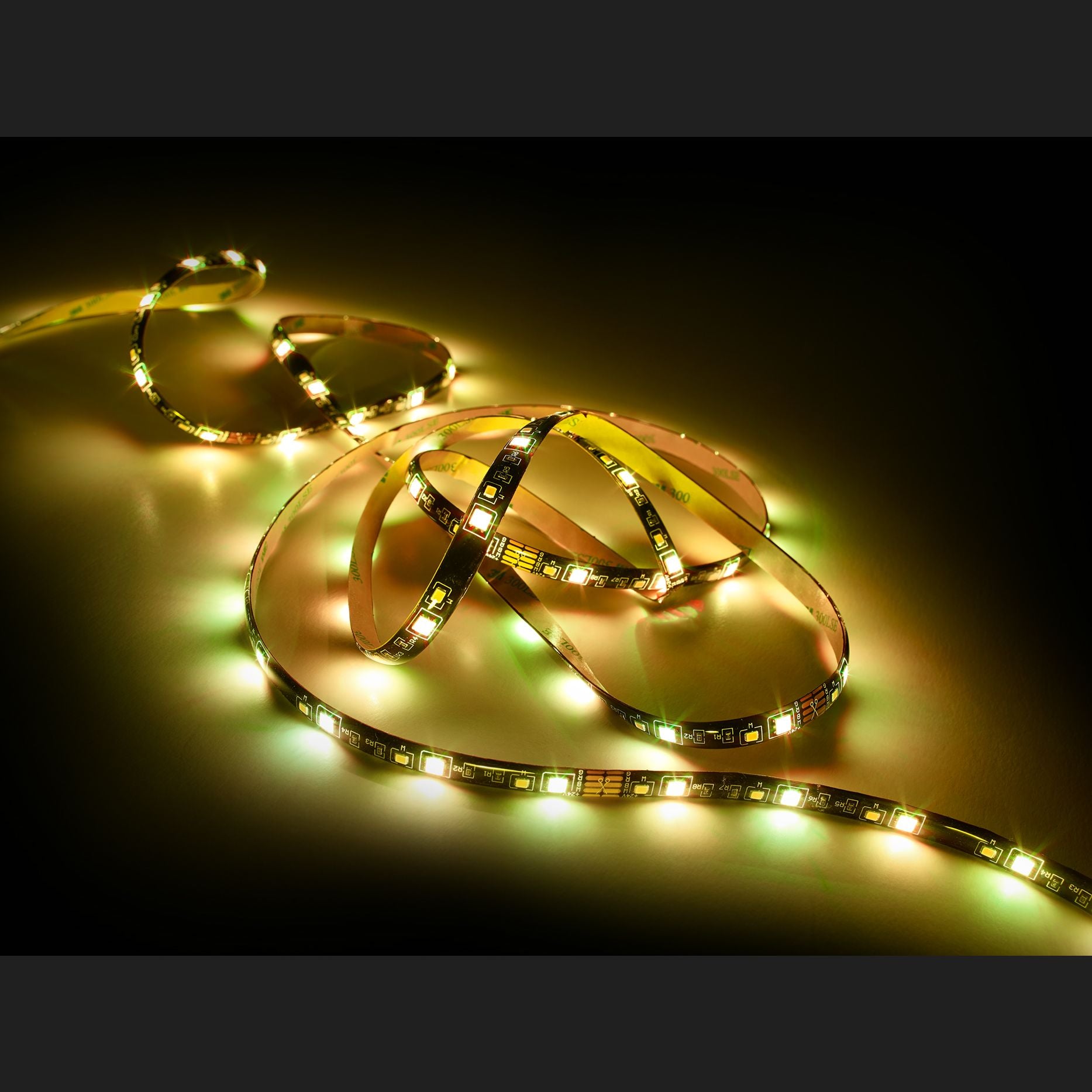 The RUSH strip light impresses with the many different ways in which it can be used. As a light accent on individual pieces of furniture or as indirect, glare-free lighting in the living room, the RUSH light strip gives the ambience a modern and cosy character. The three metre long RUSH LED strip can be shortened at the markings provided, making it ideal for personalising your living space. The LEDs can be switched to different colour modes and brightness levels using the included remote control and an RGB colour changer. Thanks to the IP44 protection class, the LED strip is protected against splashing water and can therefore be used in the bathroom or outdoors without any problems. The Stripe is kept in a plain black colour so that it blends unobtrusively into any furnishing style, especially when switched off. The luminaire also features modern LED technology, which is characterised by high light quality and energy efficiency. Compared to conventional halogen light sources, up to 80% of energy costs can be saved. LED light sources also have a long service life, produce less heat and protect the environment.