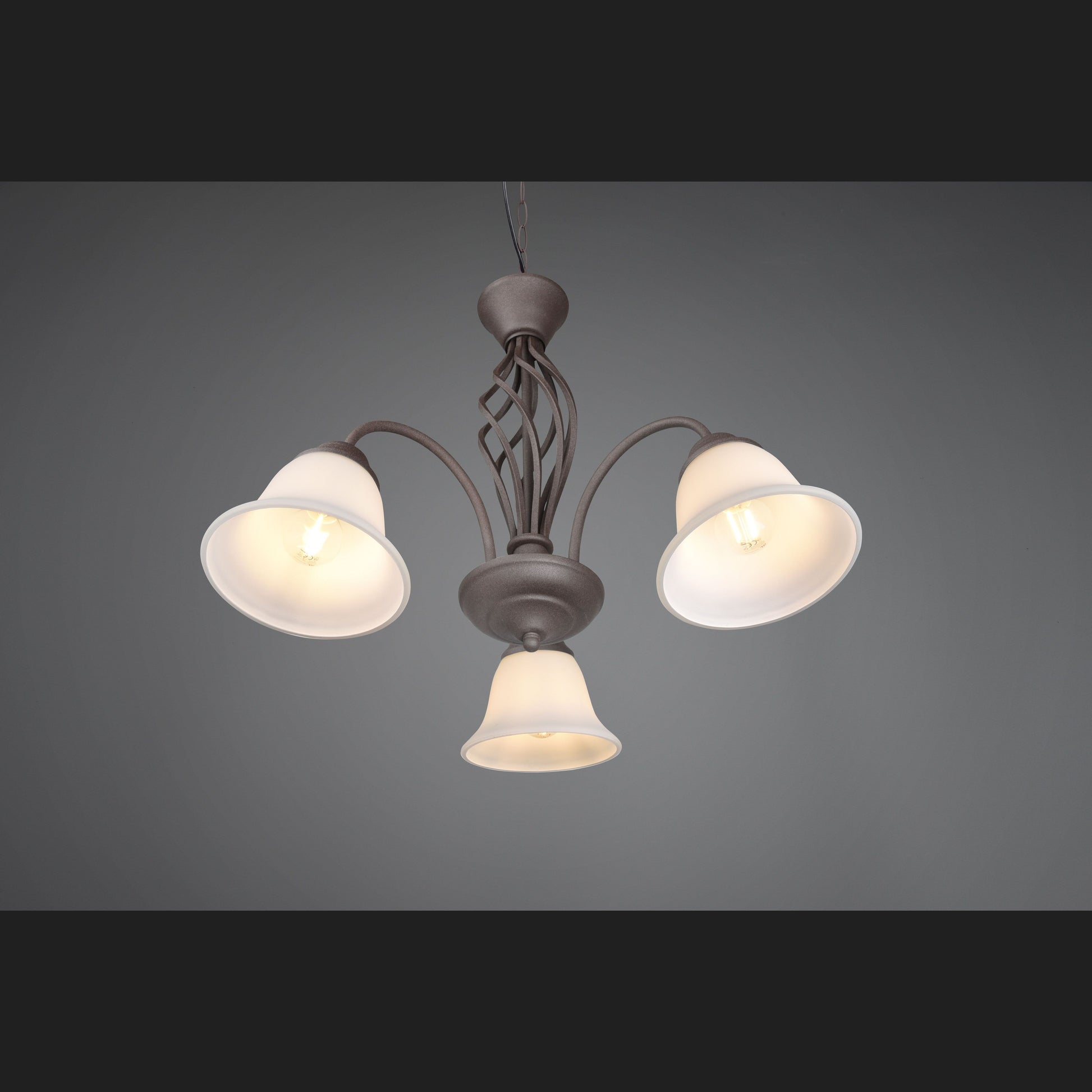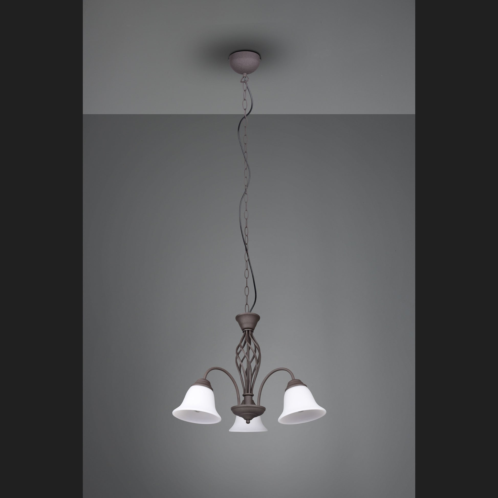 The RUSTICA series makes a statement in country house style! Rustic metal elements meet stylishly curved glass shades, which in combination create a special ambience. The pleasant rust-coloured colouring underlines the rustic design of the luminaire, which is preferably found in classic furnishing styles or provides an exciting change of style in modern living concepts. For energy-saving lighting, it is recommended to use an LED illuminant. These are an optimal alternative to conventional halogen lamps and stand for a high quality of light and energy savings of up to 80%. In addition, LED lamps help you benefit from a long service life, low heat generation and at the same time protect the environment.