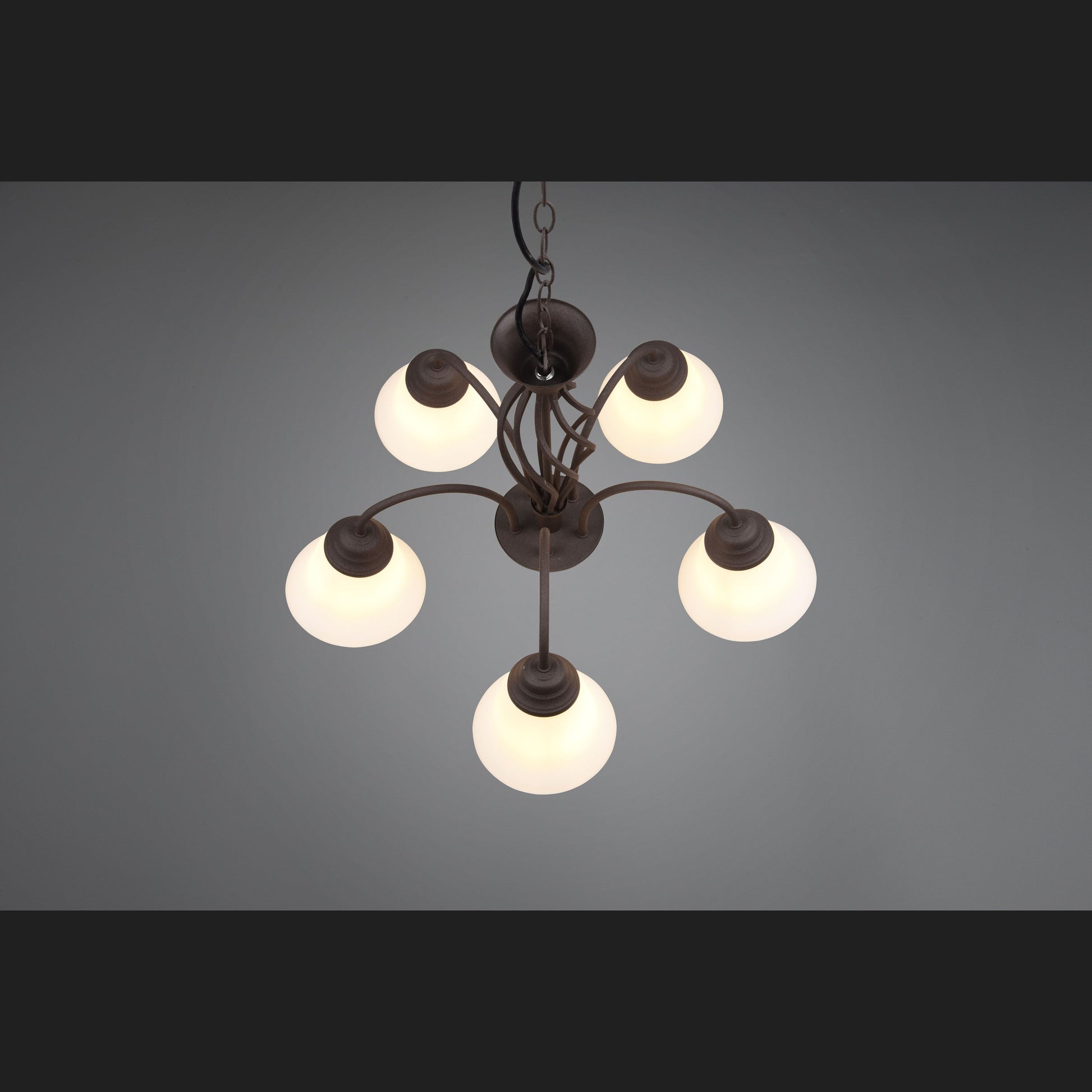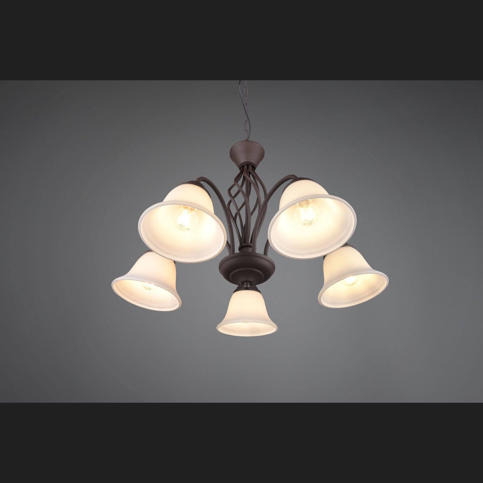 The RUSTICA series makes a statement in country house style! Rustic metal elements meet stylishly curved glass shades, which in combination create a special ambience. The pleasant rust-coloured colouring underlines the rustic design of the luminaire, which is preferably found in classic furnishing styles or provides an exciting change of style in modern living concepts. For energy-saving lighting, it is recommended to use an LED illuminant. These are an optimal alternative to conventional halogen lamps and stand for a high quality of light and energy savings of up to 80%. In addition, LED lamps help you benefit from a long service life, low heat generation and at the same time protect the environment.