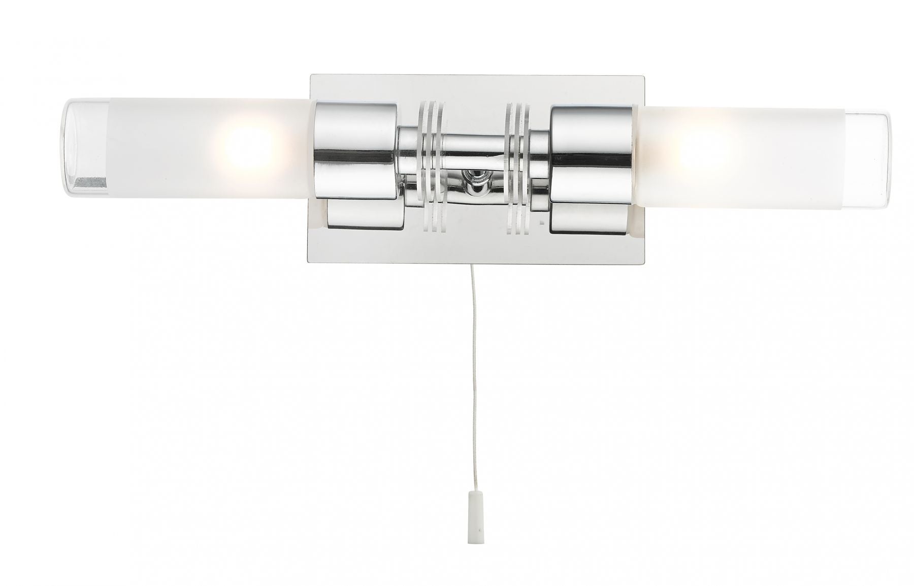The smooth curved finish of the Saturn wall light provides a touch of elegance and style, ideal for any style of bathroom. The polished chrome finish and partly diffused glass shades provide the perfect blend of sophisticated style and effective lighting. Comes with pull cord switch. The Saturn is also available in a 1 light wall light and 5 light ceiling light.