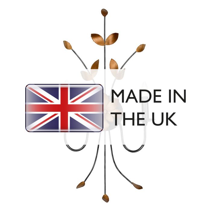 RETIRING COLLECTION MODEL - CHECK STOCK AVAILABILITY. Originally designed by Elaine Gleason, the Simone family mixes the traditional look of the rustic wheel chandelier with a softer floral touch. Recently updated and now manufactured in the UK, this collection mixes a Distressed Silver frame with Gold Leaf sculpted blossoms. The oversized 2lt wall sconce makes a great functional piece of sculptured wall art. Made in England.