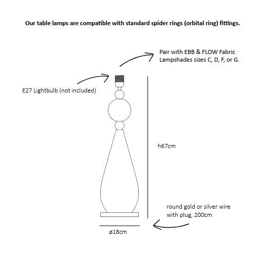 Introducing Smykke: a collection of straight-forward beauty. This collection effortlessly embodies lightness and elegance. Inspired by an earring, Smykke draws from its graceful design. With numerous top and bottom combinations, Smykke is versatile and adaptable as a pendant, wall lamp, or table lamp. Available in medium and large sizes, the Smykke table lamp in large pairs perfectly with a fabric lampshade in size F or G, adding an elegant touch to your home. Crafted from mouth-blown glass and/or crystal, each Smykke lamp is meticulously hand-built in Denmark.