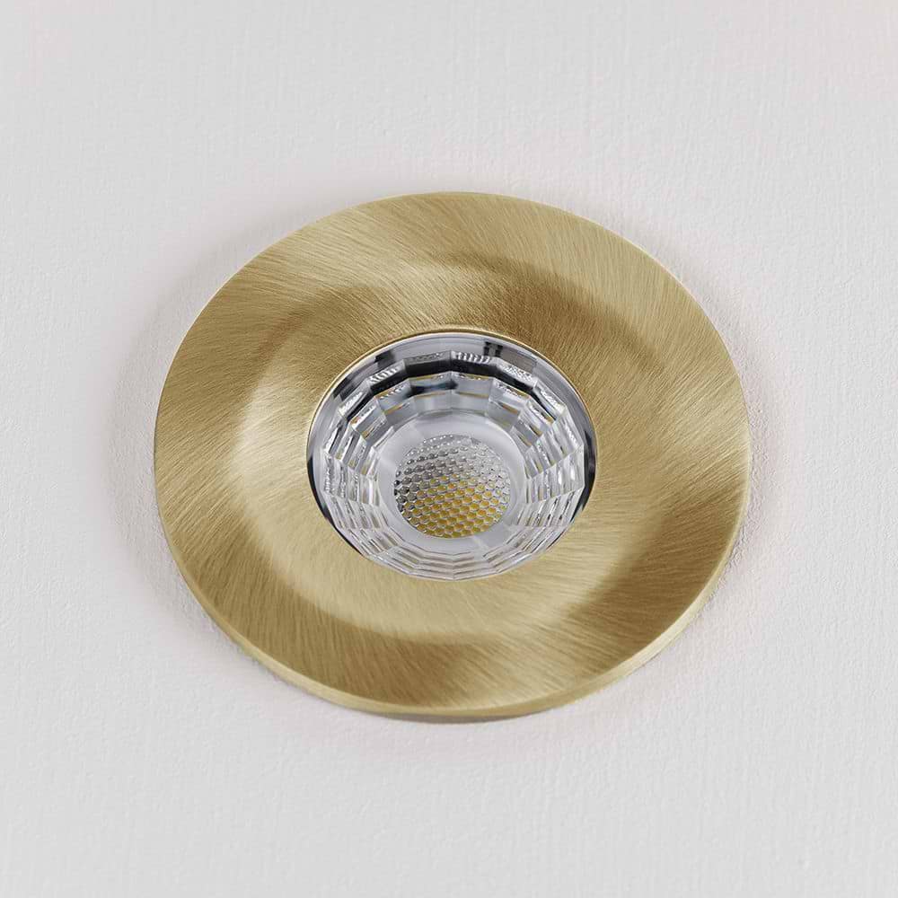 Soho Brushed Brass LED Downlights, Fire Rated, Fixed, IP65, CCT Switch, High CRI, Dimmable