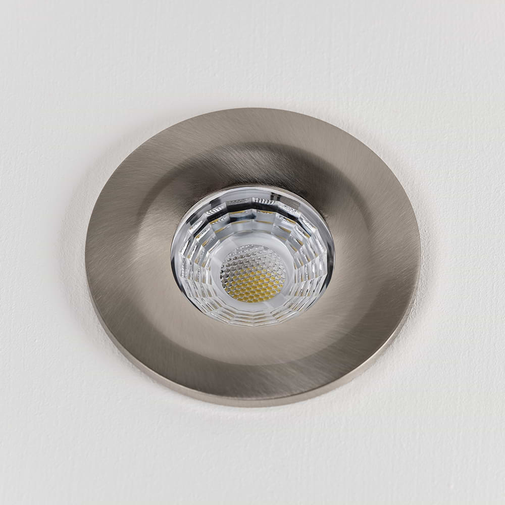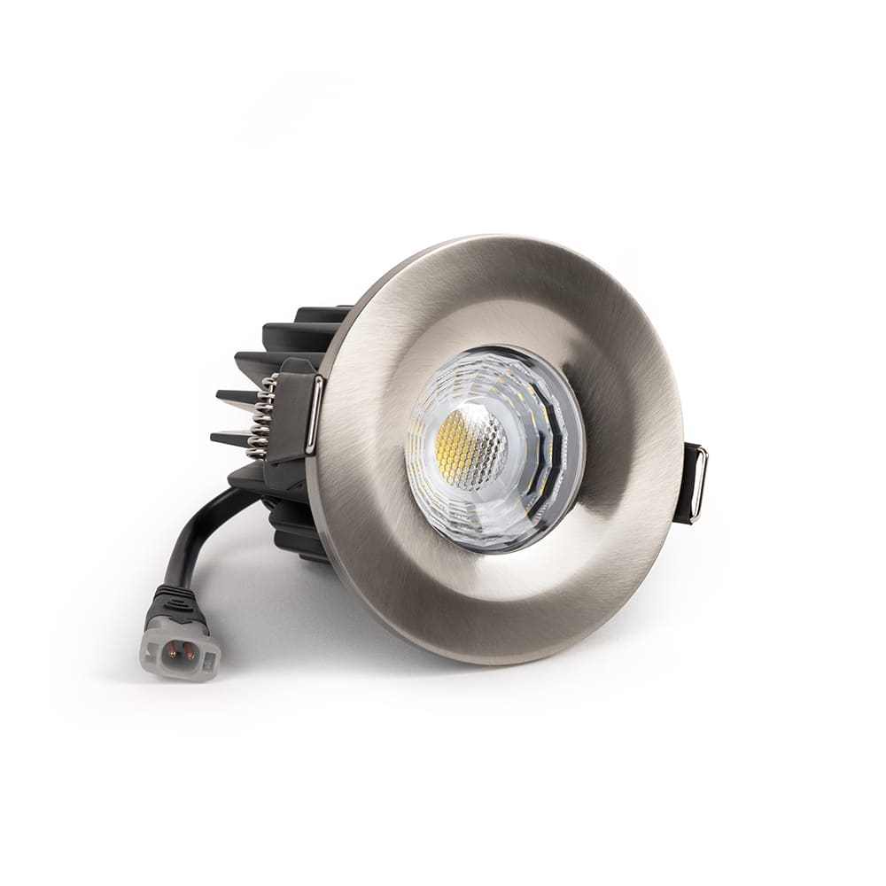 Soho Brushed Chrome LED Downlights, Fire Rated, Fixed, IP65, CCT Switch, High CRI, Dimmable