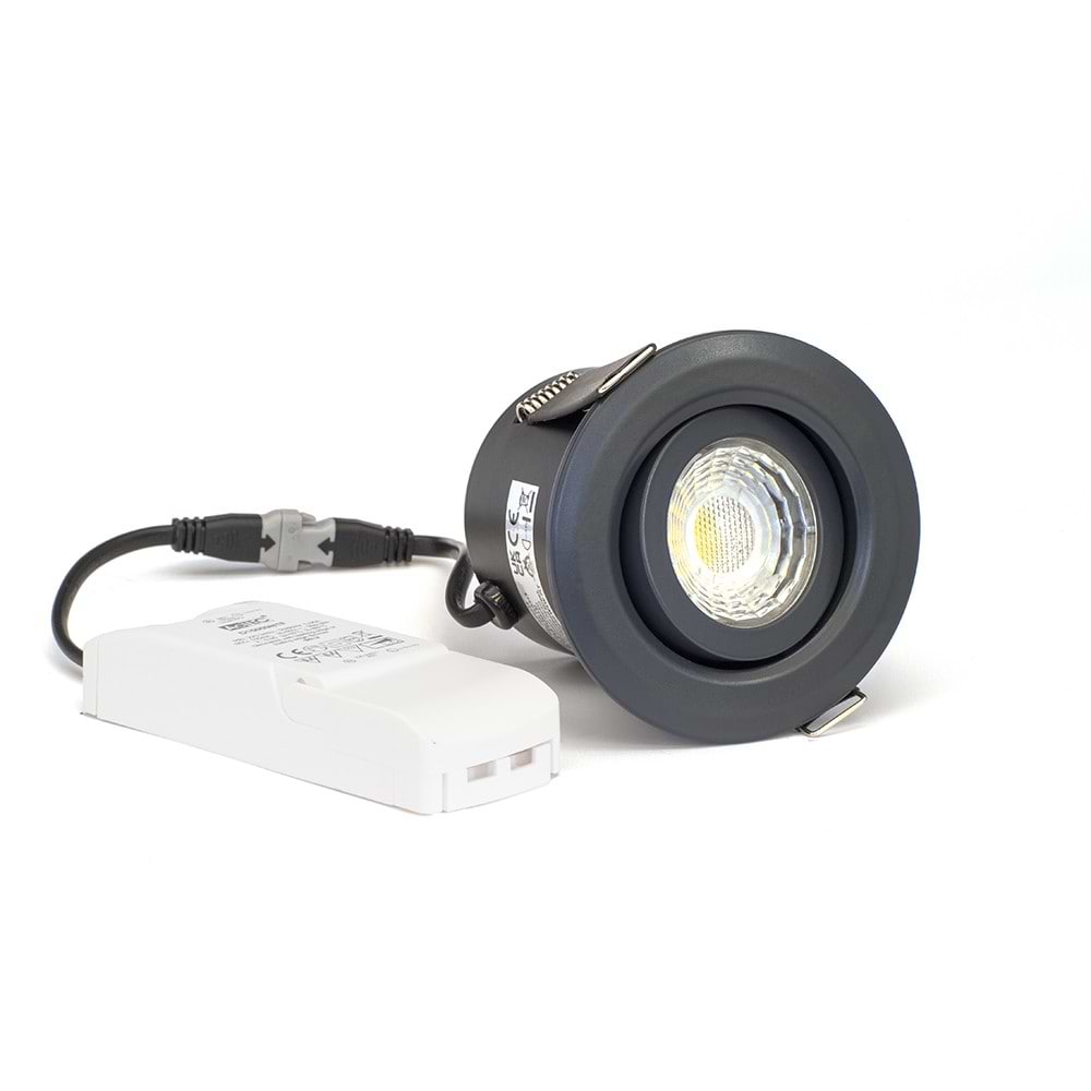 High CRI (Natural Light Simulation) IP44 & Fire Rated 6W Tiltable Dimmable Anthracite Grey LED Downlight