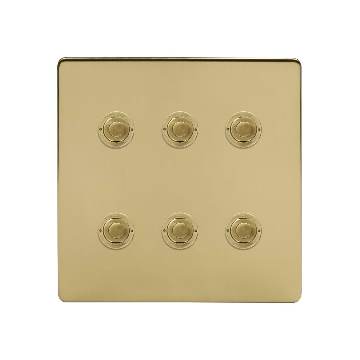Soho Lighting Brushed Brass 6 Gang 6A 2 Way Retractive Push Button Switch