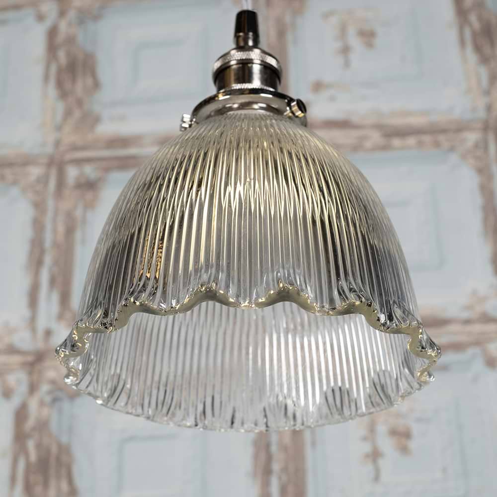 This beautiful, early 20th century inspired pendant light features a deeply cut, prismatic, dome shaped shade with scalloped edge. The D'Arblay scalloped prismatic glass dome provides a combination of uplight and downlight to illuminate an interior without creating shadow or glare.