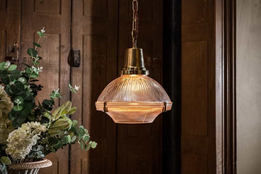 Inspired by the early 1900s Industrial Brimmed Dome™ Holophane Pendant, our Hollen pendant exudes sophistication and charm. Its quality cut glass dome features three intricate prismatic patterns, ensuring optimal light distribution. This iconic light looks stunning as a central pendant or in a row above a kitchen worktop.
