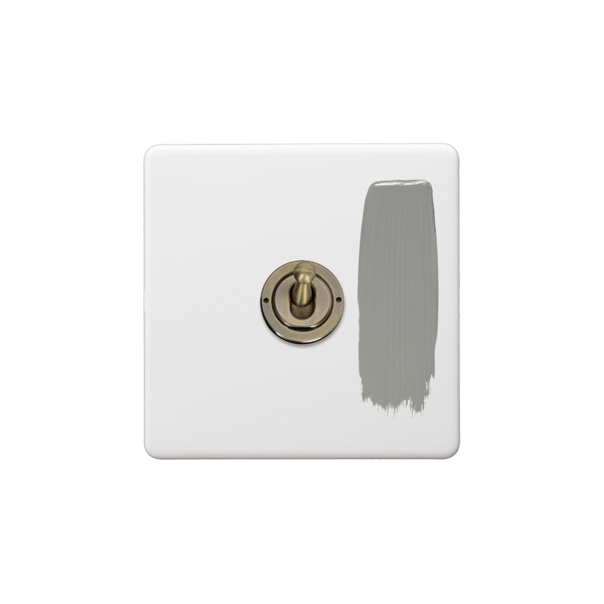 This Primed Paintable 1 Gang Toggle Light Switch 2 Way with Antique Brass Switch is a luxury paintable primed plate with a antique brass switch. This innovative design allows you to match your switches and sockets with your preferred wall colour for a seamless finish.