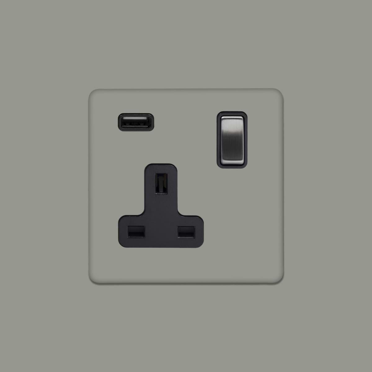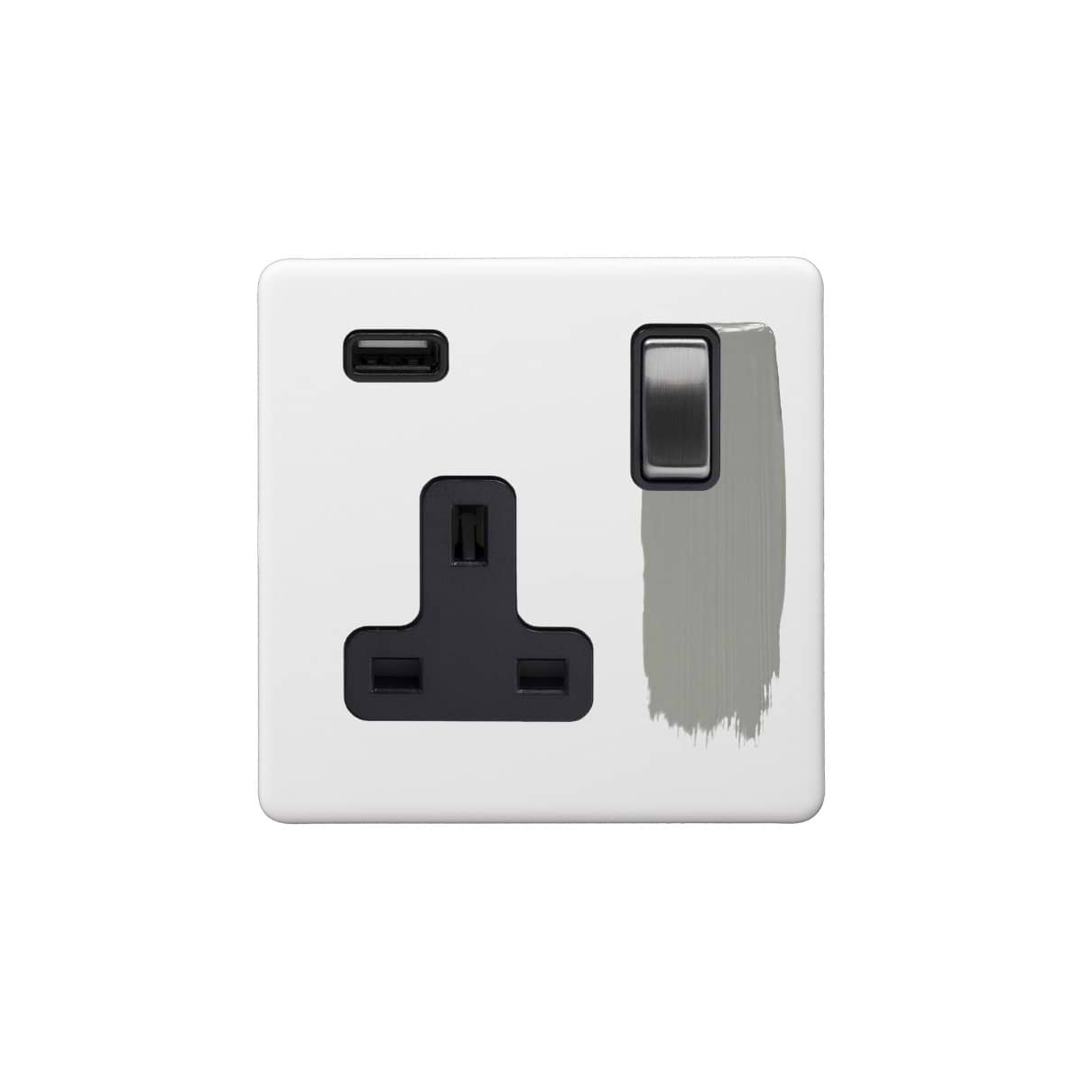 This Primed Paintable 13A 1 Gang Double Pole Switched USB Socket (USB Output 2.1amp) with Brushed Chrome Switch and Black Insert is a luxury paintable primed plate with a brushed chrome switch. This innovative design allows you to match your switches and sockets with your preferred wall colour for a seamless finish.