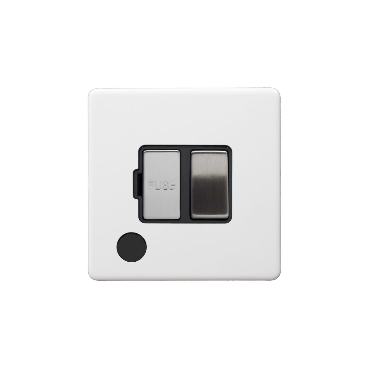 Soho Lighting Primed Paintable 13A Switched Fused Connection Unit (FCU) Flex Outlet with Brushed Chrome Switch and Black Insert