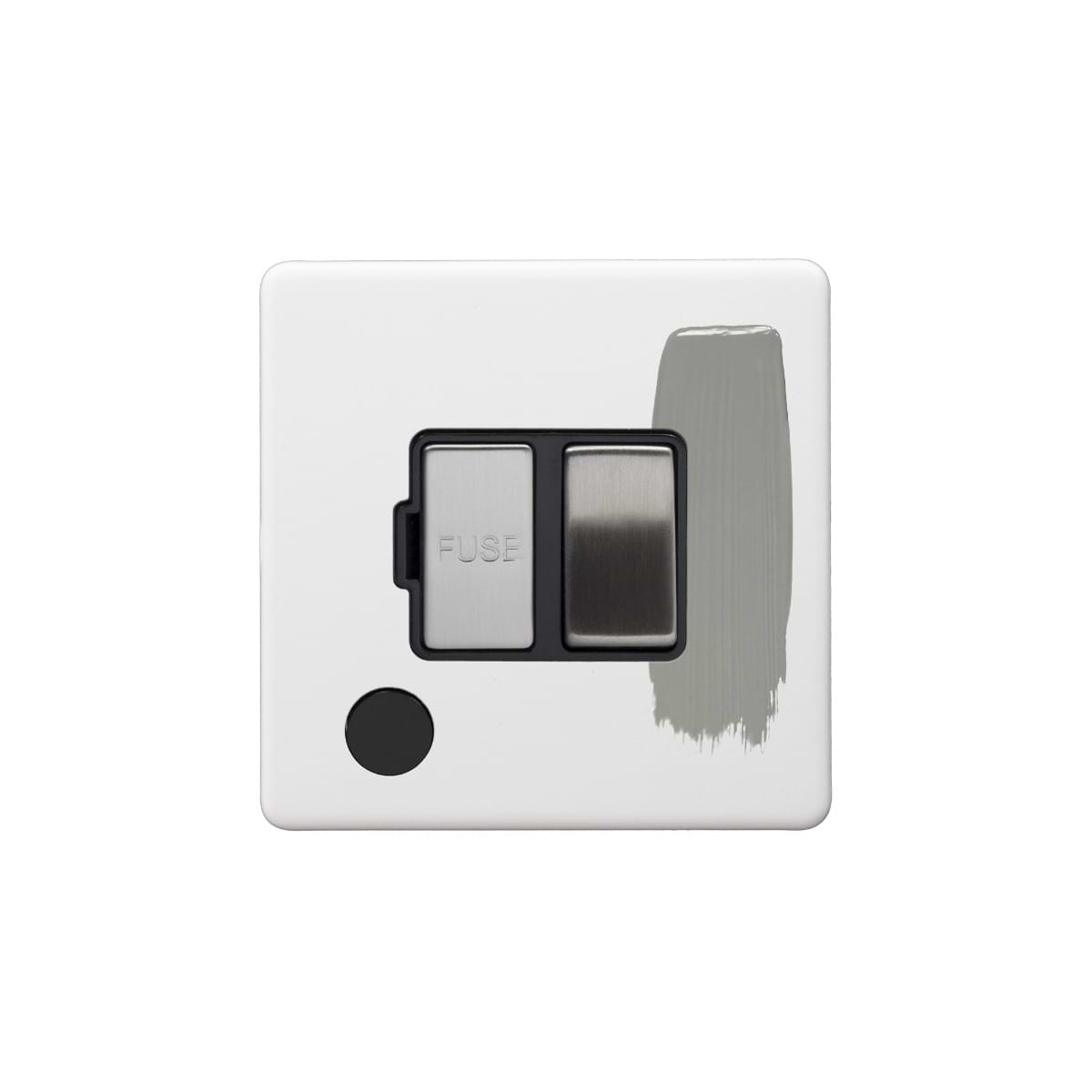 This Primed Paintable 13A Switched Fused Connection Unit (FCU) Flex Outlet with Brushed Chrome Switch and Black Insert is a luxury paintable primed plate with a brushed chrome switch. This innovative design allows you to match your switches and sockets with your preferred wall colour for a seamless finish.