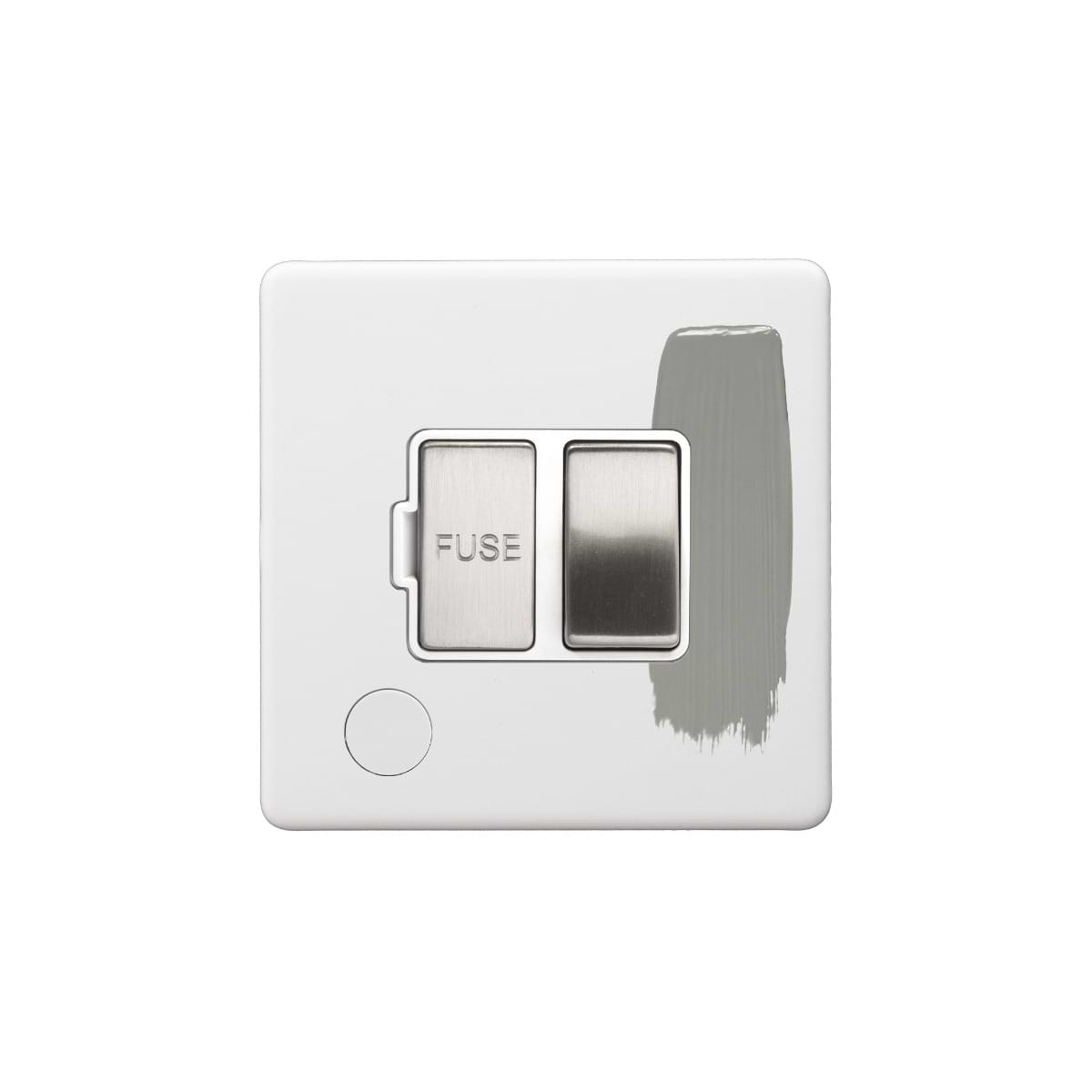 Soho Lighting Primed Paintable 13A Switched Fused Connection Unit (FCU) Flex Outlet with Brushed Chrome Switch and White Insert