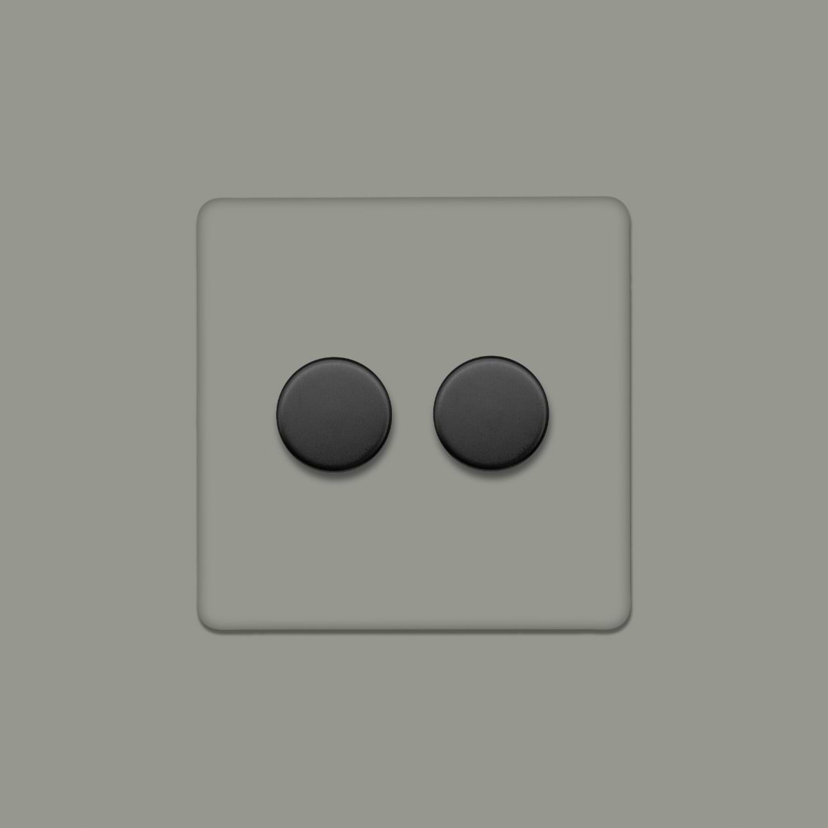 This Primed Paintable 2 Gang 2 Way Intelligent Dimmer Switch 150W LED (300w Halogen/Incandescent) with Matt Black Switch is a luxury paintable plate with a robust metal switch in black that has been primed and ready to paint. This innovative design allows you to blend the plate with your desired wall colour for a smooth and seamless appearance.Simply paint the plate at the same time as you paint your wall and allow to dry before clipping the plate to the switch/socket backing.