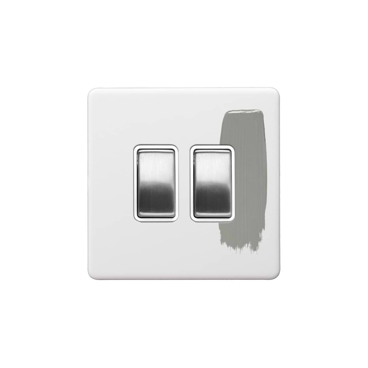 This Primed Paintable 2 Gang Light Switch 2-Way 10A with Brushed Chrome Switch and White Insert is a luxury paintable primed plate with a brushed chrome switch. This innovative design allows you to match your switches and sockets with your preferred wall colour for a seamless finish.