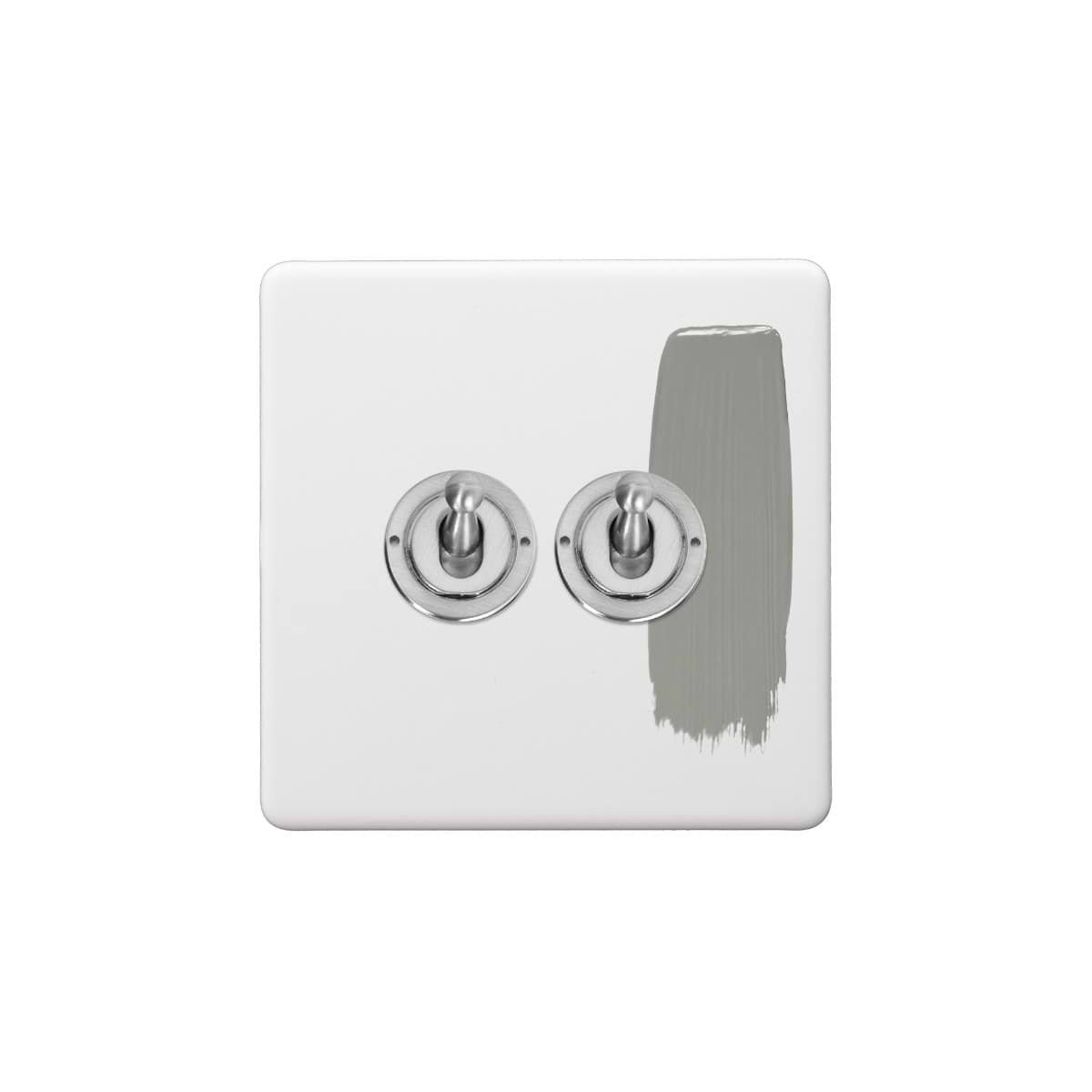 This Primed Paintable 2 Gang Toggle Switch 2-Way with Brushed Chrome Switch is a luxury paintable primed plate with a brushed chrome switch. This innovative design allows you to match your switches and sockets with your preferred wall colour for a seamless finish.