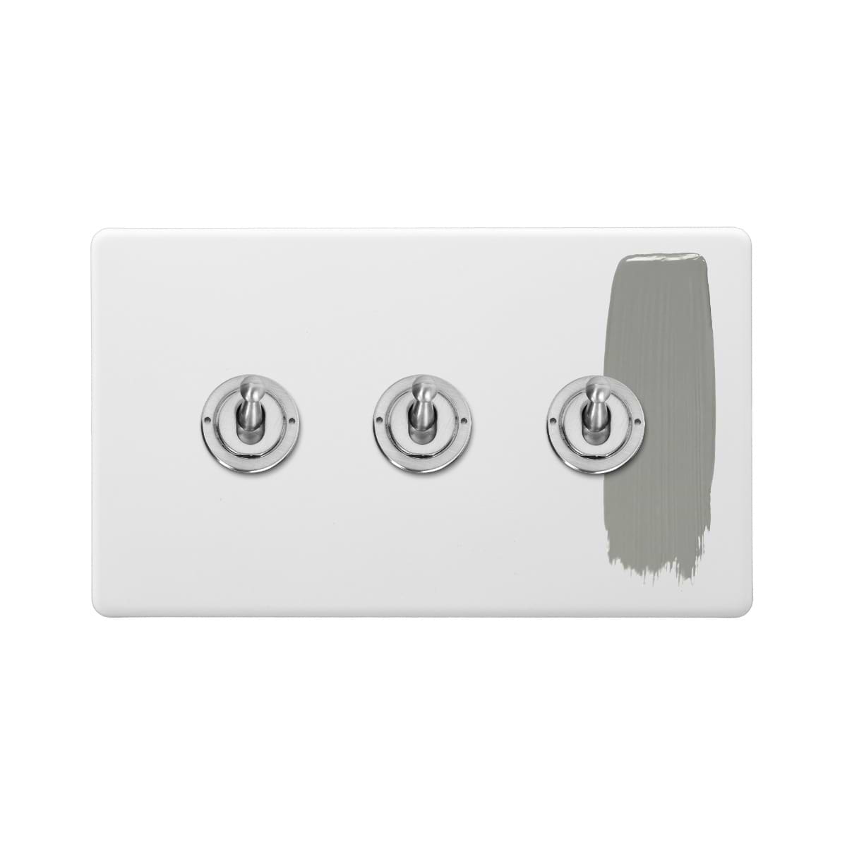 This Primed Paintable 3 Gang 2 Way Toggle Switch with Brushed Chrome Switch is a luxury paintable primed plate with a brushed chrome switch. This innovative design allows you to match your switches and sockets with your preferred wall colour for a seamless finish.