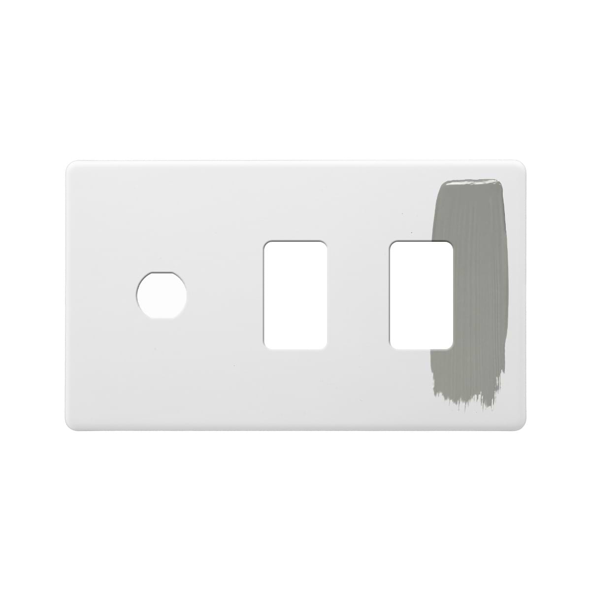 This Primed Paintable 3 Gang 2RM+1CM Dual Module Grid Plate is a luxury paintable primed plate. This innovative design allows you to match your switches and sockets with your preferred wall colour for a seamless finish.