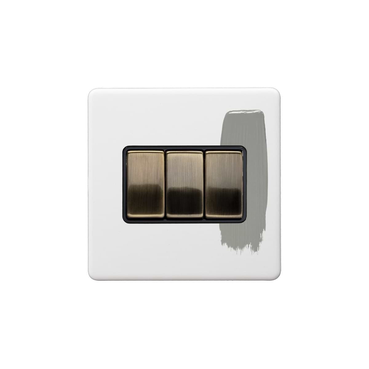 Soho Lighting Primed Paintable 3 Gang Intermediate switch with Antique Brass Switch