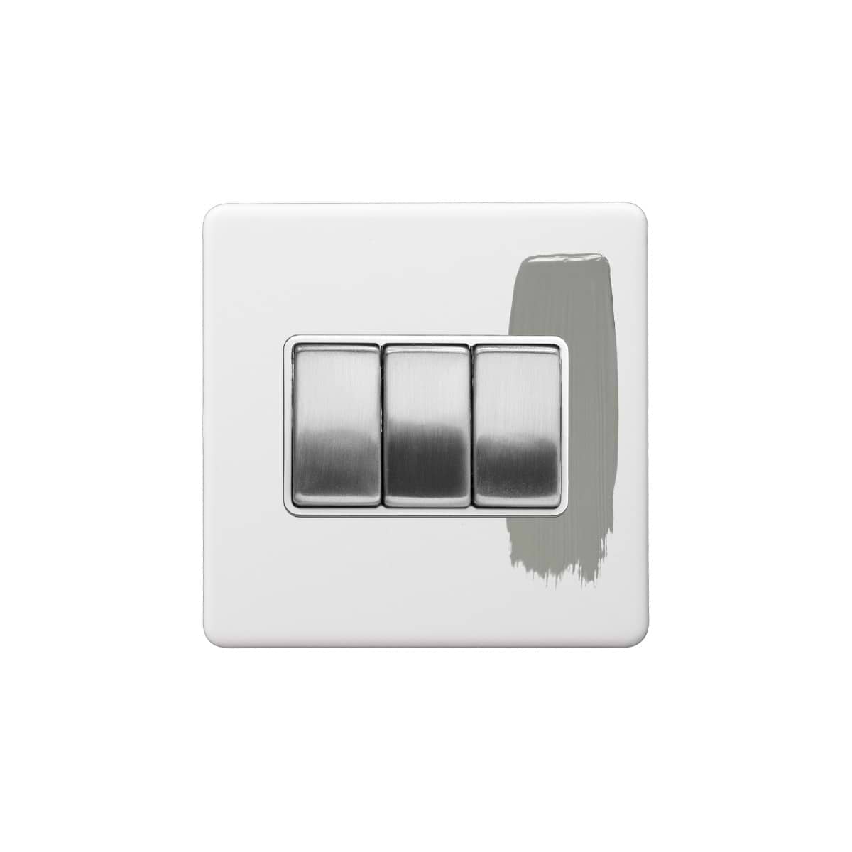 Soho Lighting Primed Paintable 3 Gang Intermediate switch with Brushed Chrome Switch and White Insert