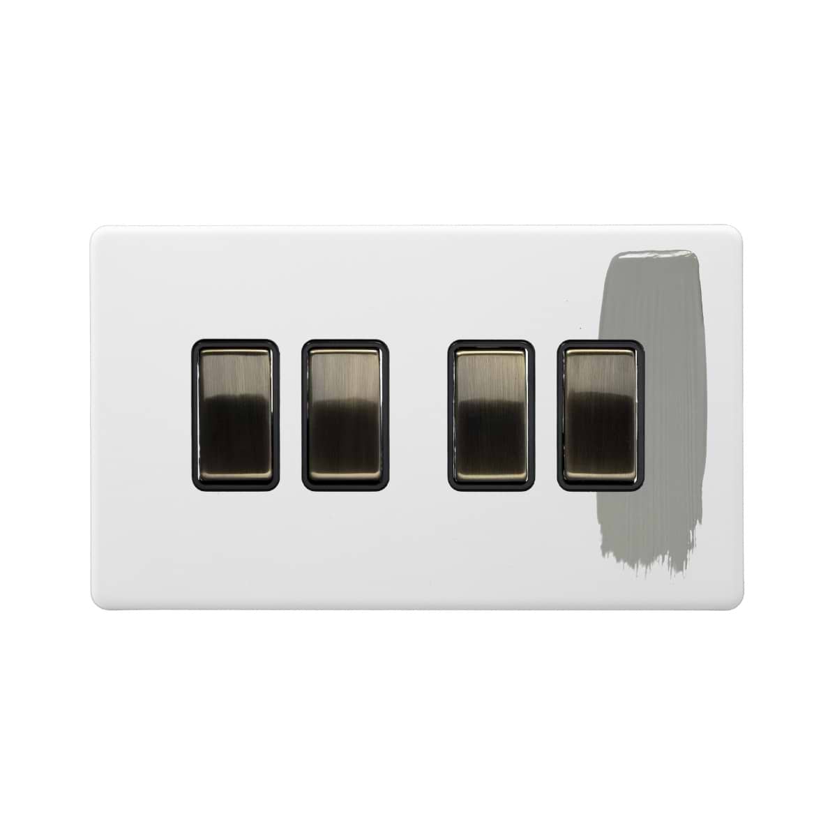 Soho Lighting Primed Paintable 4 Gang 2 Way 10A Light Switch with Antique Brass Switch