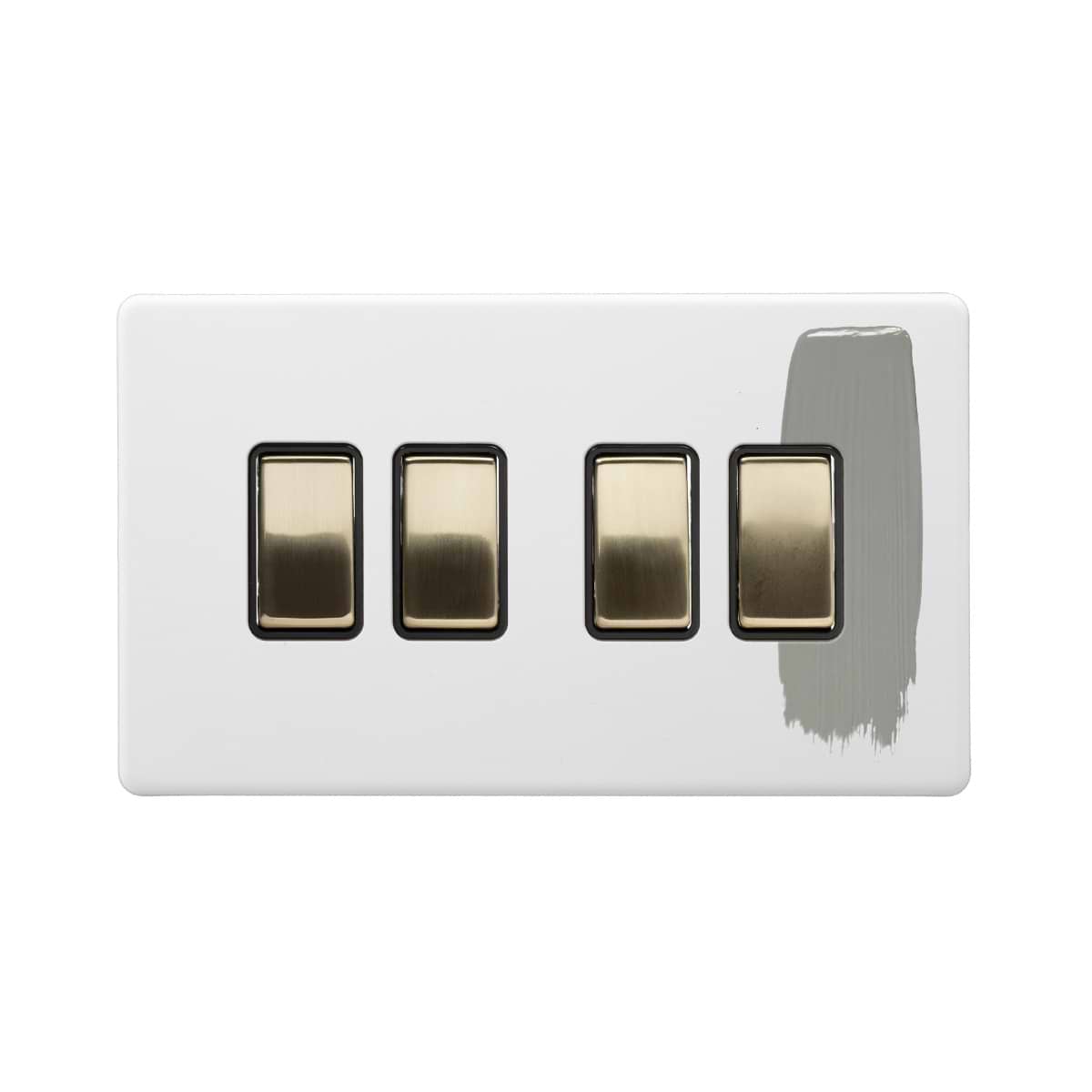 Soho Lighting Primed Paintable 4 Gang 2 Way 10A Light Switch with Brushed Brass Switch with Black Insert