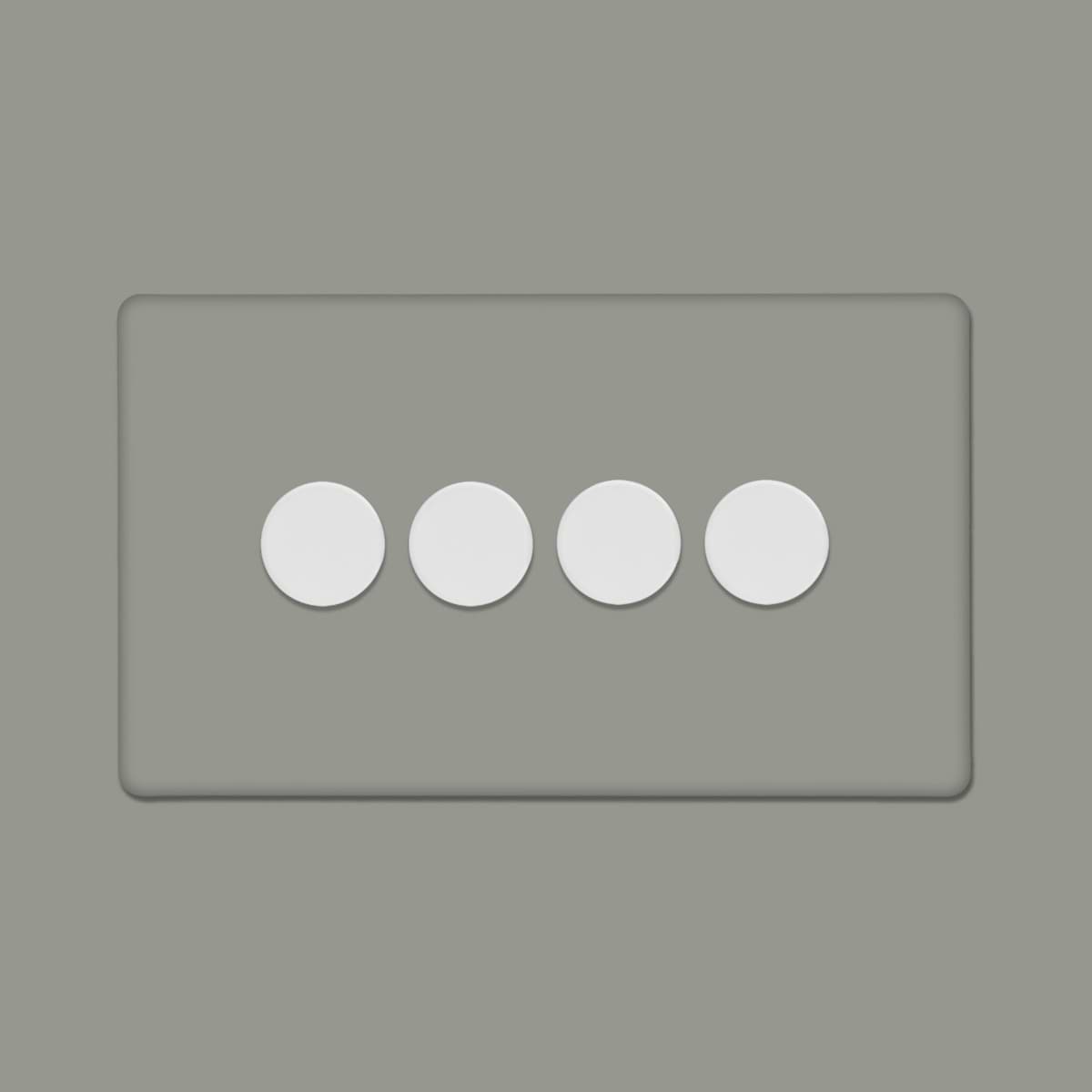 This Primed Paintable 4 Gang 2 Way Trailing Edge Dimmer Switch 150W LED (300w Halogen/Incandescent) with White Switch is a luxury paintable primed plate with a white switch. This innovative design allows you to match your switches and sockets with your preferred wall colour for a seamless finish.
