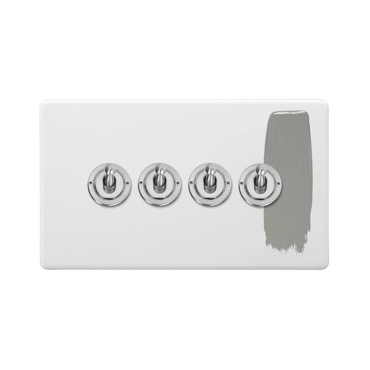 This Primed Paintable 4 Gang 2 Way Toggle Switch with Brushed Chrome Switch is a luxury paintable primed plate with a brushed chrome switch. This innovative design allows you to match your switches and sockets with your preferred wall colour for a seamless finish.
