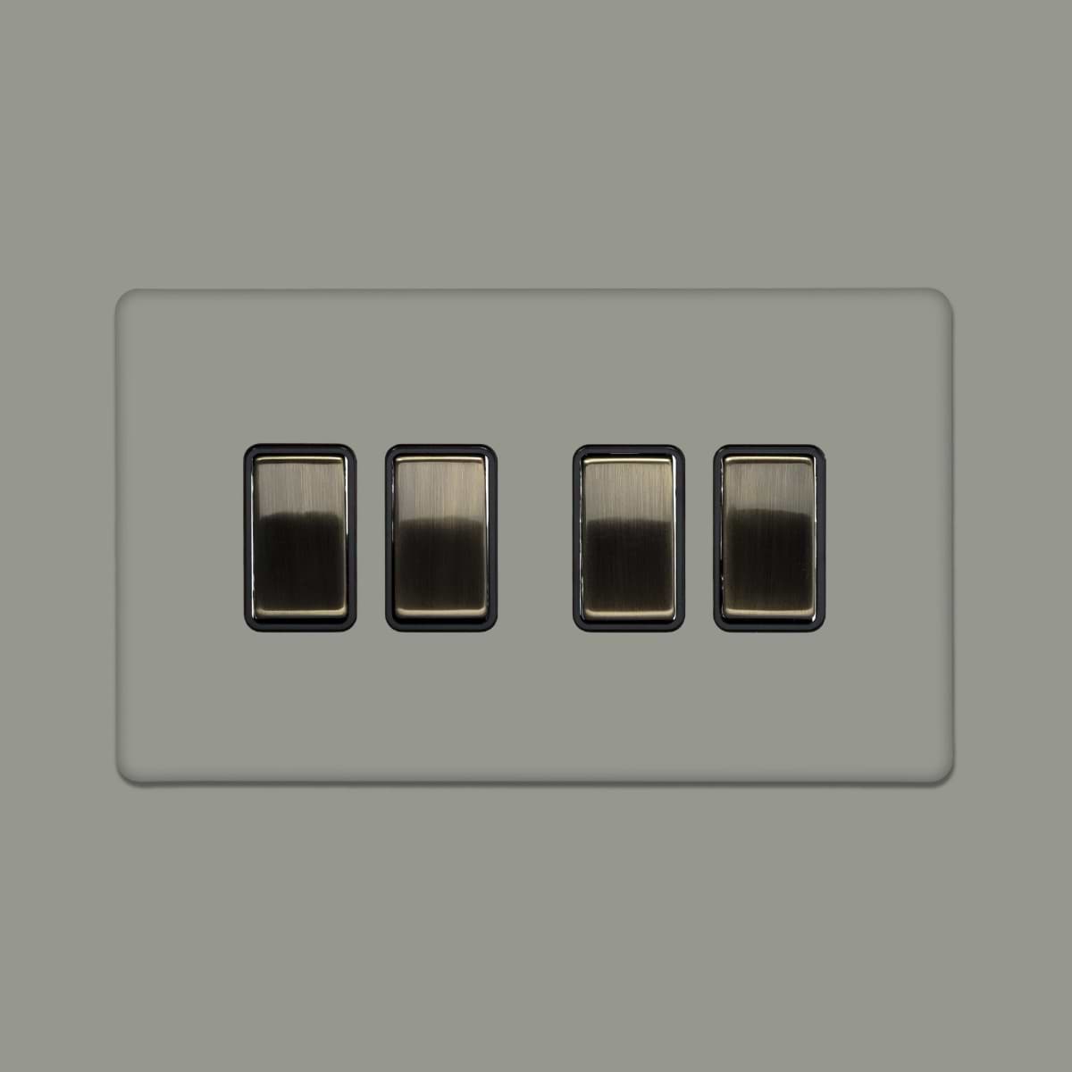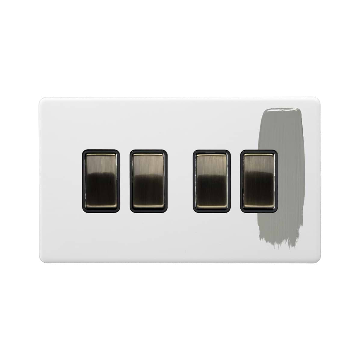 This Primed Paintable 4 Gang Intermediate switch with Antique Brass Switch is a luxury paintable primed plate with a antique brass switch. This innovative design allows you to match your switches and sockets with your preferred wall colour for a seamless finish.