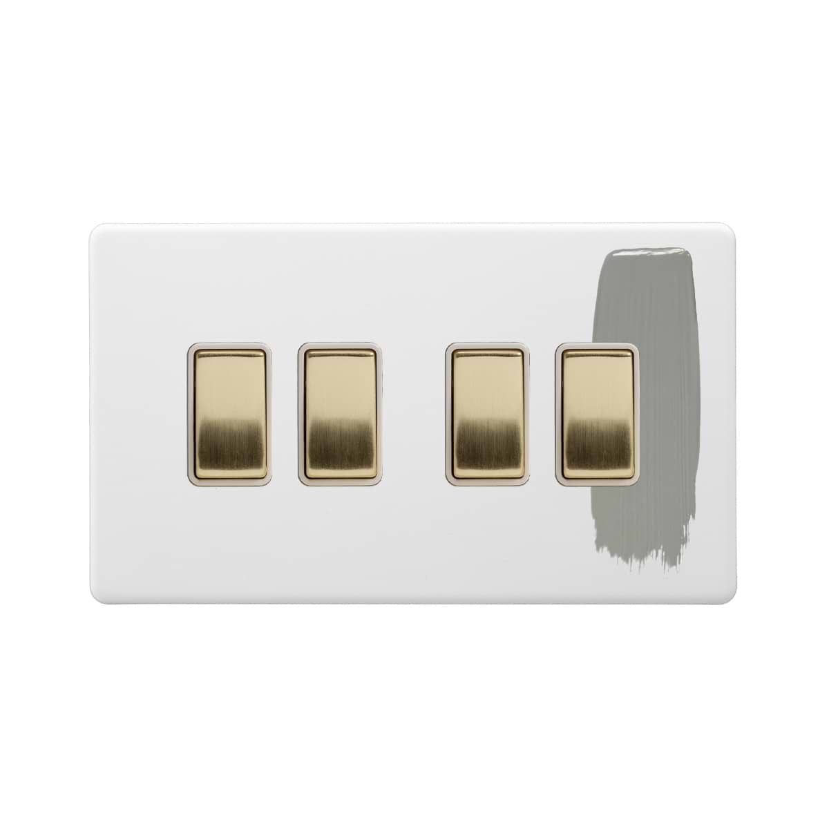 Soho Lighting Primed Paintable 4 Gang Intermediate switch with Brushed Brass Switch with White Insert